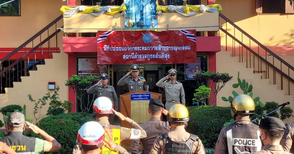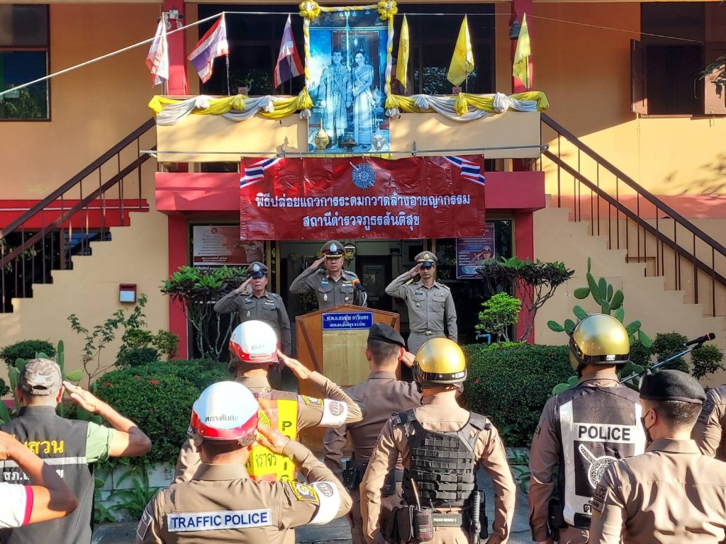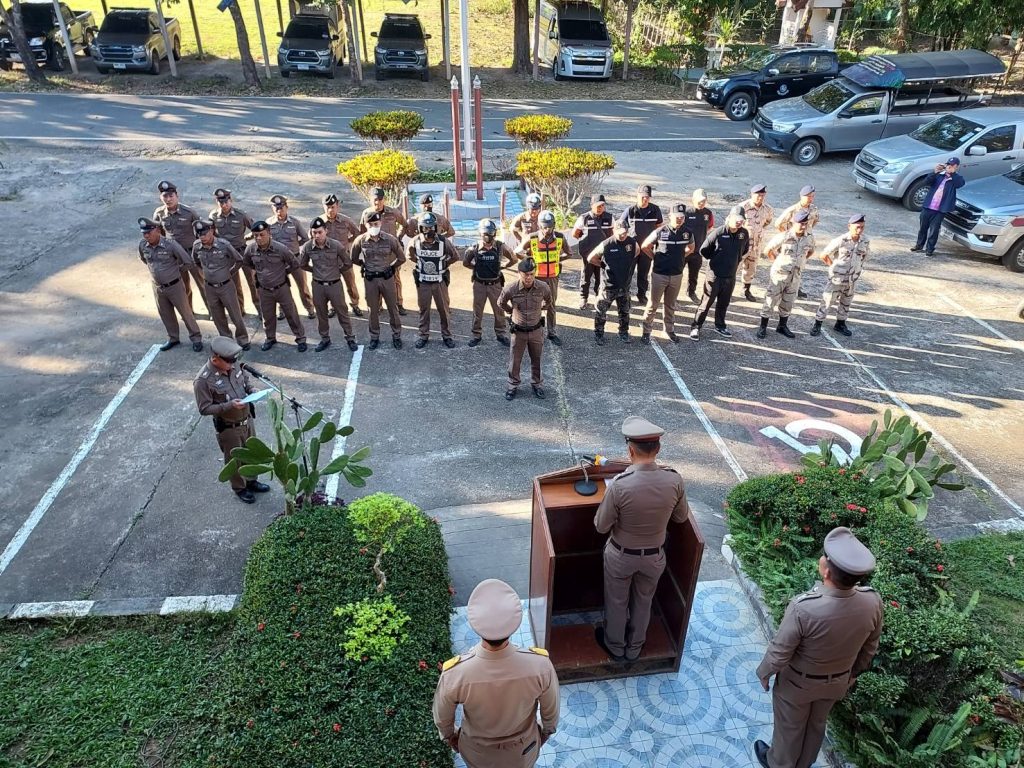วันที่ 27 ธันวาคม 2566 เวลา 17.00 น โดยมี พ.ต.อ.สมชาย กาวิเนตร ผกก.สภ.สันติสุข ฯ พร้อมด้วย นาย เทิดบุญ ศิลารมณ์ นายอำเภอสันติสุข เป็นประธานในพิธีการปล่อยแถวฯ ระดมกวาดล้างอาชญากรรมตามมาตราการป้องกันปราบปรามอาชญากรรมการรักษาความสงบเรียบร้อย ความปลอดภัยในชีวิตและทรัพย์สินของประชาชน,นักท่องเที่ยวและการดูแลอำนวยความสะดวกด้านการจารจร และการป้องกันและลดอุบัติเหตุทางถนน ในห้วงวันหยุดยาวปีใหม่ 2567 โดยมี ,พ.ต.ท.เฉลิมเกียรติ ทำสุข รอง ผกก.ป.สภ.สันติสุข ฯ , ว่าที่ พ.ต.ต.สมพงษ์ ยั่งยืน สวป.สภ.สันติสุข ฯ ,ข้าราชการตำรวจ สภ.สันติสุข ฯ จำนวน 33 นาย และ อส.อ.สันติสุข จำนวน 4 นาย ร่วมกิจกรรมปล่อยแถว ฯณ บริเวณ ลานหน้า สภ.สันติสุข ฯ