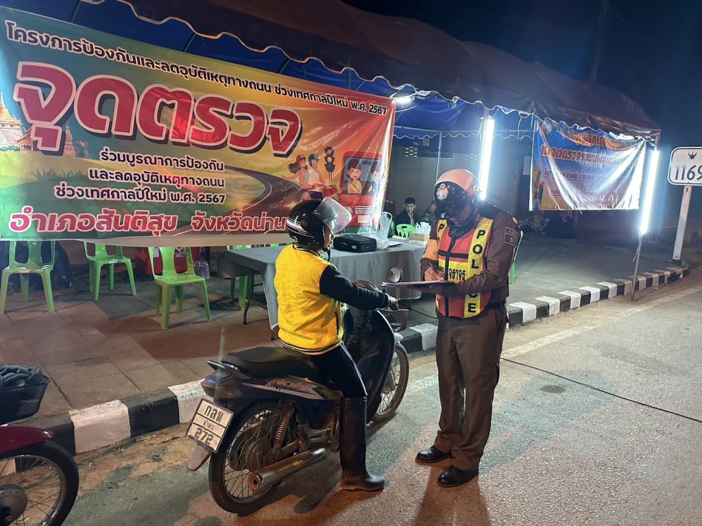ตั้งจุดตรวจกวดขันวินัยจราจร 1 มกราคม 2567 โดย admin / การปฏิบัติเดือน มกราคม 2567 วันที่ 1 มกราคม 2567 เวลา 09.30 น. น.โดยการอำนวยการของ พ.ต.อ.สมชาย กาวิเนตร ผกก สภ.สันติสุข, พ.ต.ท.เฉลิมเกียรติ ทำสุข รอง ผกก.ป.สภ.สันติสุข, พ.ต.ท.รุ่งเพ็ชรสัณห์ เฟื่องมณี สว.อก.สภ.สันติสุข, ว่าที่ พ.ต.ต.สมพงษ์ ยั่งยืน สวป.สภ.สันติสุข หัวหน้าชุดเคลื่อนที่เร็ว มอบหมายให้ ร.ต.อ.อุทัย รินอินทร์ หัวหน้าจุดตรวจฯ พร้อมด้วย สายตรวจรถยนต์ รถจักรยานยนต์ และเจ้าหน้าที่จราจร ได้ตั้งจุดตรวจกวดขันวินัยจราจรบริเวณถนนหน้าจุดตรวจสี่แยกห้วยปา ถนนสาย สันติสุข-อวน เพื่อบังคับใช้กฎหมายกวดขันวินัยจราจร ป้องกันและลดอุบัติเหตุทางถนน ในช่วงเทศกาลส่งท้ายปีเก่าต้อนรับปีใหม่ สภาพการจราจรคล่องตัว