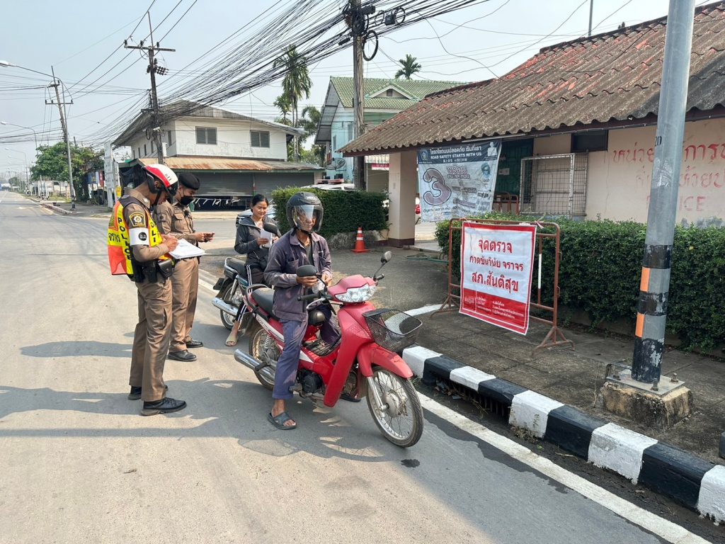 ตั้งจุดตรวจเพื่อกวดขันวินัยจราจร ณ จุดตรวจห้วยปา ถนน สันติสุข-แม่จริม ต.ดู่พงษ์ อ.สันติสุข ตามแผนการขออนุมัติตั้งจุดตรวจในระบบ TPCC