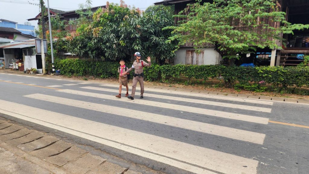 ตำรวจจราจร อำนวยความสะดวกการจราจรหน้าสถานศึกษา รร.บ้านดู่พงษ์