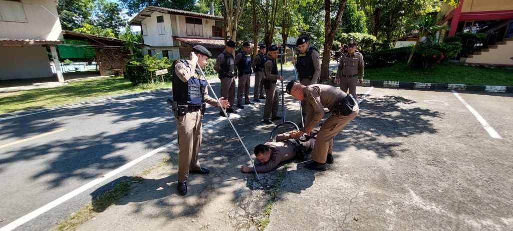 ฝึกยุทธวิธี 26 ตุลาคม 2566 โดย admin / การปฏิบัติเดือน ตุลาคม 2566 วันที่ 26 ต.ค.66 เวลา 10.00 น. โดยการอำนวยการของ พ.ต.อ.สมชาย กาวิเนตร ผกก.ฯ พ.ต.ท.เฉลิมเกียรติ ทำสุข รอง ผกก.ป.ฯ มอบหมายให้ พ.ต.ท.ทวีศักดิ์ หงษ์สามสิบหก สวป.ฯ ประชุมชี้แจงข้อสั่งการของผู้บังคับบัญชา ฝึกยุทธวิธี ทดสอบระบบเตือนภัย กล้องวงจรปิด ธนาคาร ธกส.