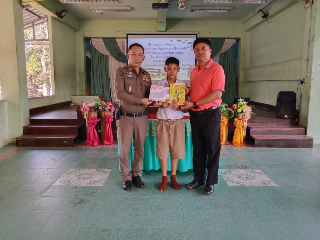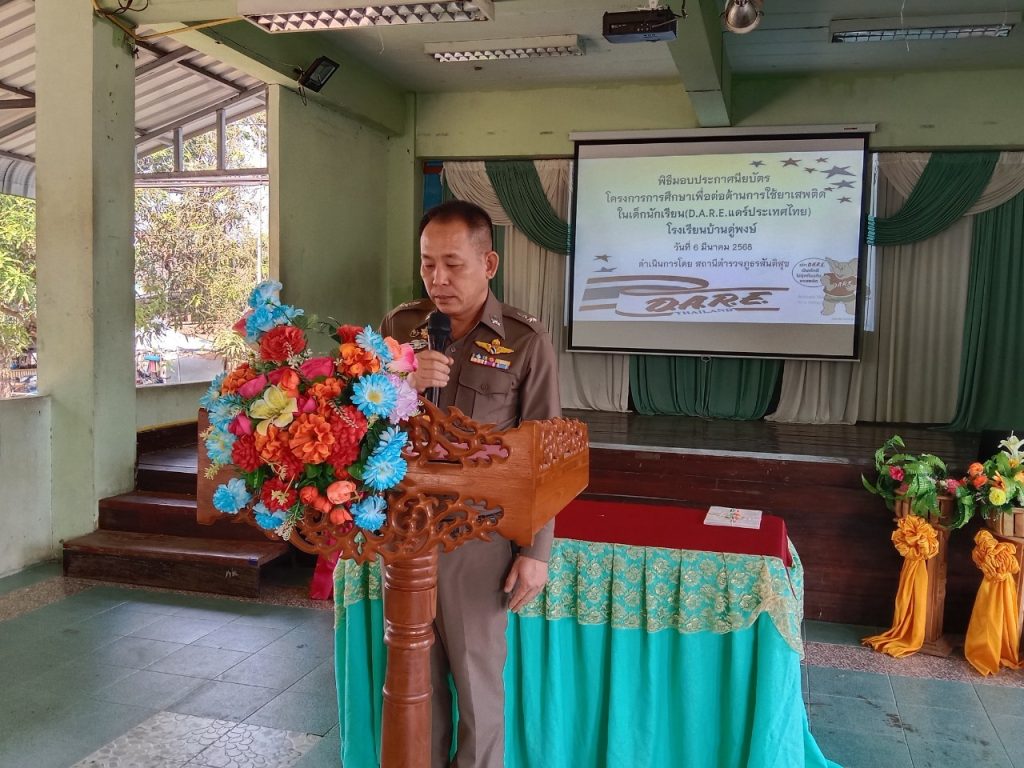 พิธีมอบใบประกาศนียบัตรให้กับนักเรียนผู้สำเร็จการศึกษา โครงการการศึกษาเพื่อต่อต้านการใช้ยาเสพติดในเด็กนักเรียน(D.A.R.E.ประเทศไทย) ประจำปีการศึกษา 2567