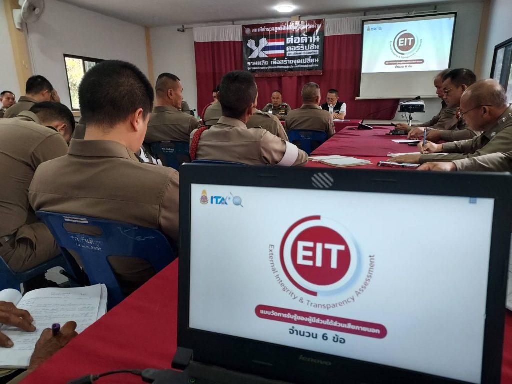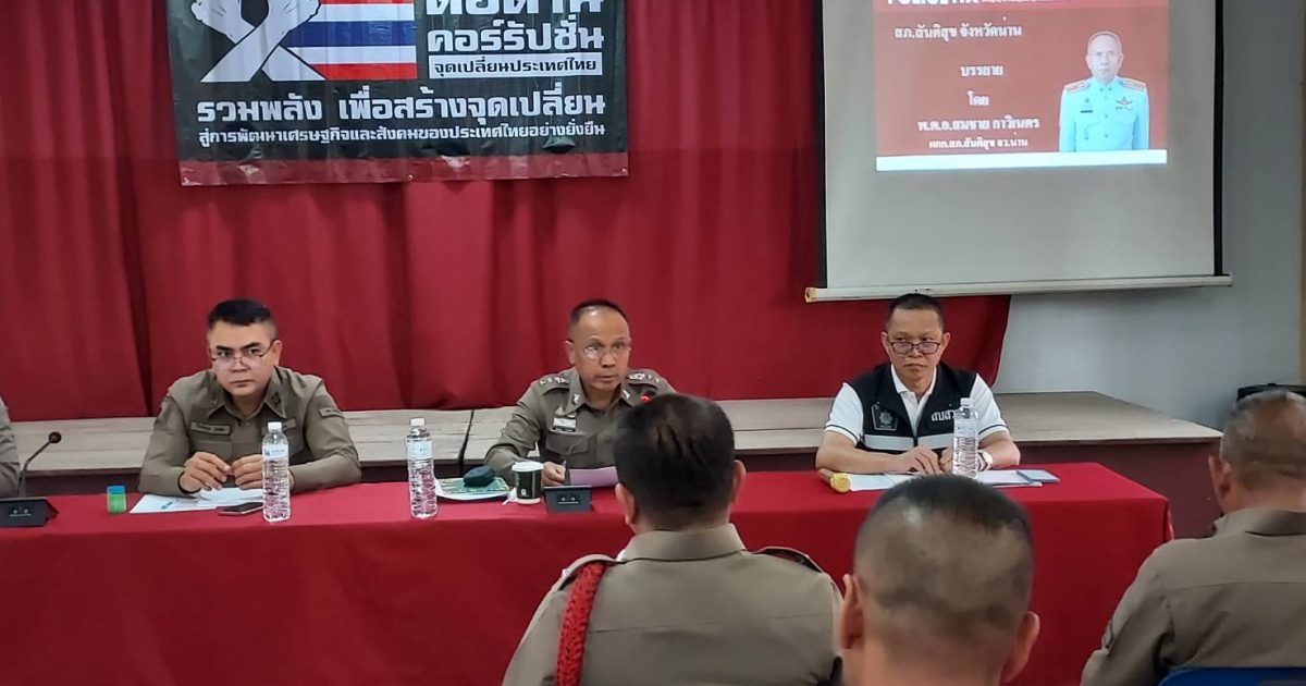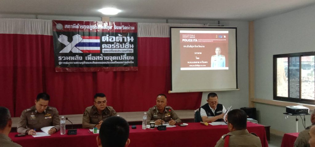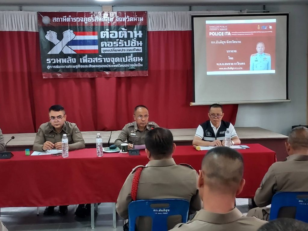 สภ.สันติสุข จว.น่าน วันที่ 18 มีนาคม 2568 เวลา 10.00 น. พ.ต.อ.สมชาย กาวิเนตรผกก.สภ.สันติสุข ฯ เป็นประธานการประชุมประจำเดือน มีนาคม 2568 พร้อมด้วย พ.ต.ท.กรัยฉัตร อินต๊ะพันธ์ รอง ผกก.ป.สภ.สันติสุขฯ, พ.ต.ท.กิตติคุณ ขุนชุ่ม รอง ผกก. (สอบสวน) ฯ , พ.ต.ท.กชกรรณ พุทธจันทร์ รอง ผกก.สืบสวน ฯ ประชุมชี้แจงนโยบายของผู้บังคับบัญชา และแสดงความยินดี กับ พ.ต.ท.กรัยฉัตร อินต๊ะพันธ์ รอง ผกก.ป.ฯ, พ.ต.ท.มารุต อินต๊ะลือ สว.(สอบสวน) ฯ ,พ.ต.ต.ชนาธิป ขันทะยศ สว.สส.ฯ , พ.ต.ต.หญิง อมรรัตน์ รักสัตย์ สว.อก.ฯ ที่ได้ย้ายมาประจำ สภ.สันติสุขฯ , แจ้งการเตรียมพร้อมรับการตรวจราชการ ประจำปีงบประมาณ 2568 จาก จเรตำรวจ ตลอดจนข้อราชการต่างๆ งบประมาณการเงิน และเร่งรัดผลการจับกุมคดียาเสพติด ให้เป็นไปตามนโยบายของผู้บังคับบัญชา โดยเน้นย้ำให้ปฏิบัติตามกฎ ระเบียบ ข้อบังคับ รักษาระเบียบ วินัย มีความสามัคคี ตั้งใจทำงานไม่ให้เกิดข้อบกพร่องในหน้าที่ และได้สอบถามปัญหาอุปสรรคในการปฏบัติงาน มอบแนวทางการแก้ไขปัญหาด้านต่างๆ และชี้แจงถ่ายทอดอธิบายถึงหัวข้อ ITA,EIT,EIT2,OIT ในการการประเมิน ITA ประจำปีงบประมาณ พ.ศ.2568เรื่อง การจัดการทรัพย์สินของราชการ ของบริจาคและการจัดเก็บของกลาง เพื่อป้องกันการทุจริตภายในหน่วยงาน เสริมสร้างความรู้ความเข้าใจให้เจ้าหน้าที่ตำรวจ สามารถใช้ทรัพย์สินของทางราชการได้อย่างถูกต้อง และ หลังจาก เสร็จสิ้นการประชุมฯ ได้ร่วมกันประกอบอาหารกลางวัน และร่วมรับประทานอาหารร่วมกัน ตาม โครงการครัวปันสุขของ สภ.สันติสุขฯ ณ ห้องประชุมสโมสร สภ.สันติสุข