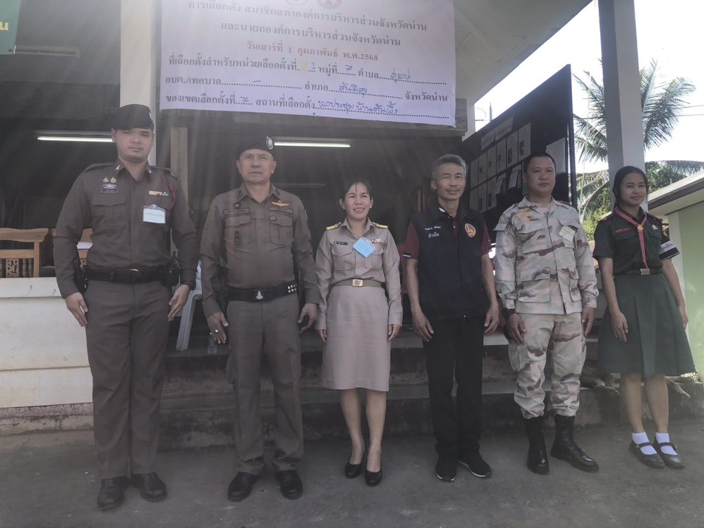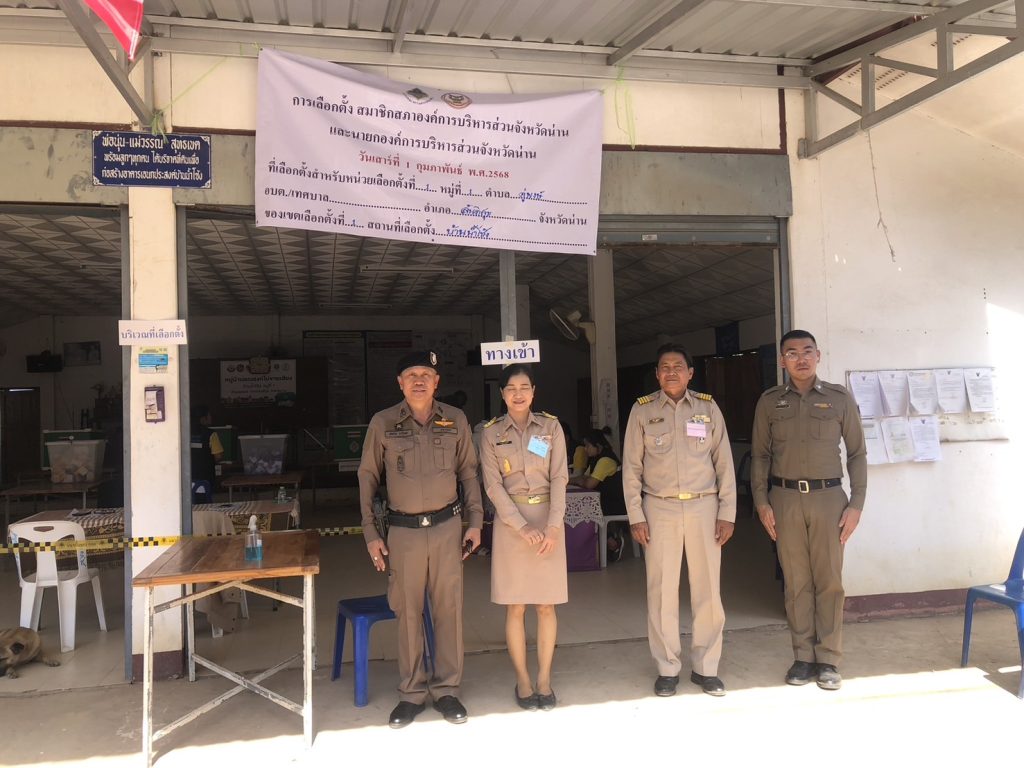 พ.ต.อ.สมชาย กาวิเนตร ผกก.สภ.สันติสุข ออกตรวจเยี่ยมหน่วยเลือกตั้งในเขตพื้นที่อำเภอสันติสุข จ.น่าน