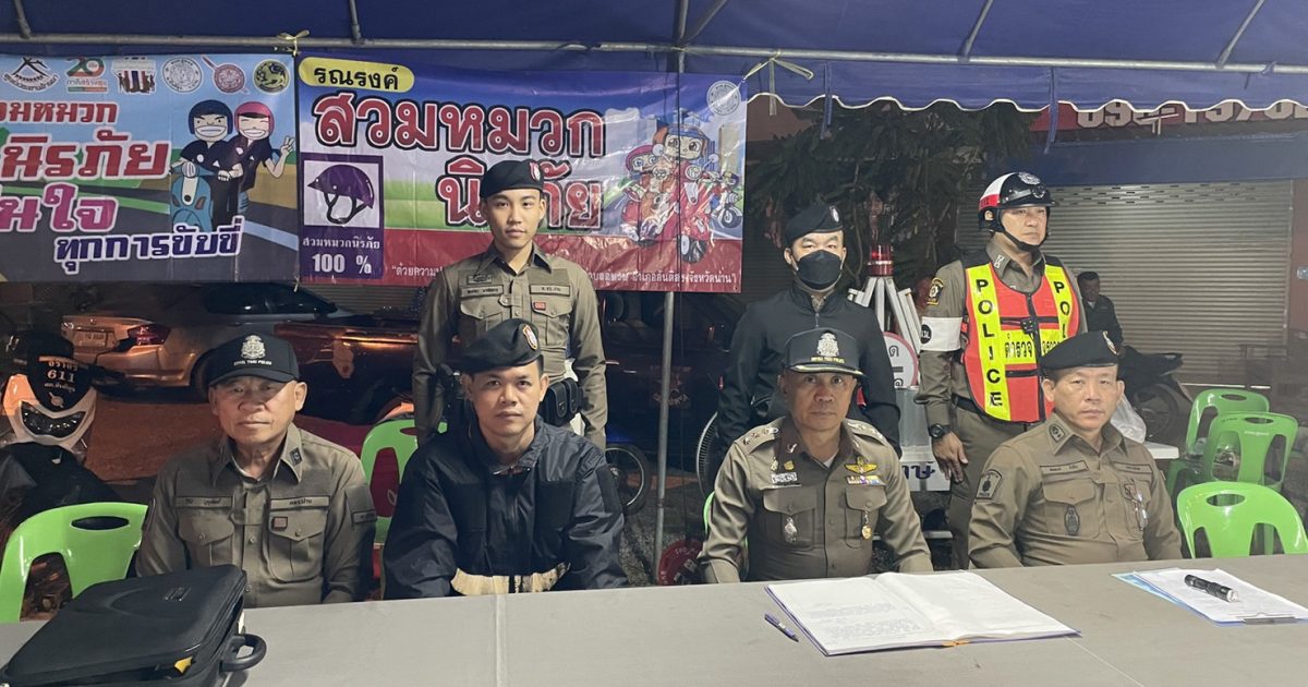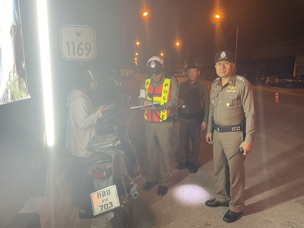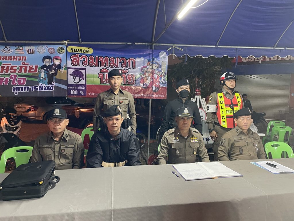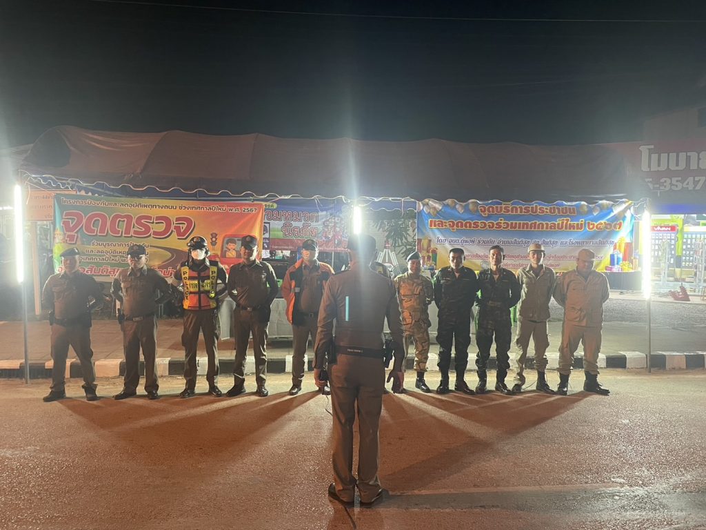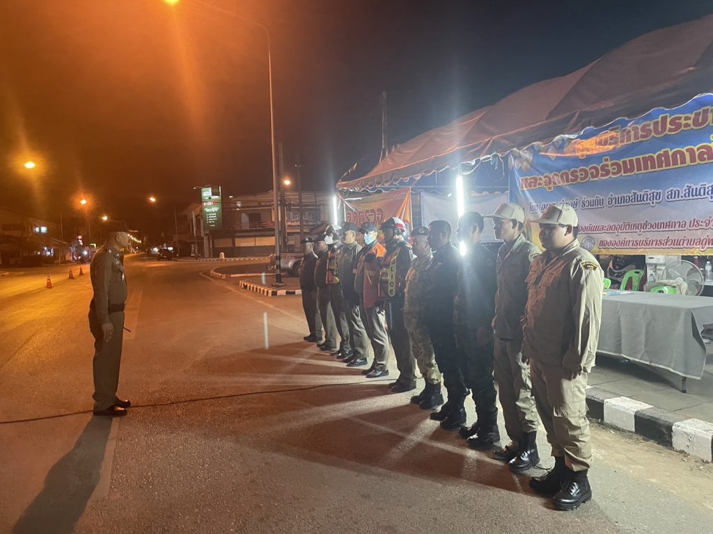 พ.ต.อ.สมชาย กาวิเนตร ผกก.สภ.สันติสุขฯ ปล่อยแถวและตั้งจุดตรวจวัดแอลกอฮอล์