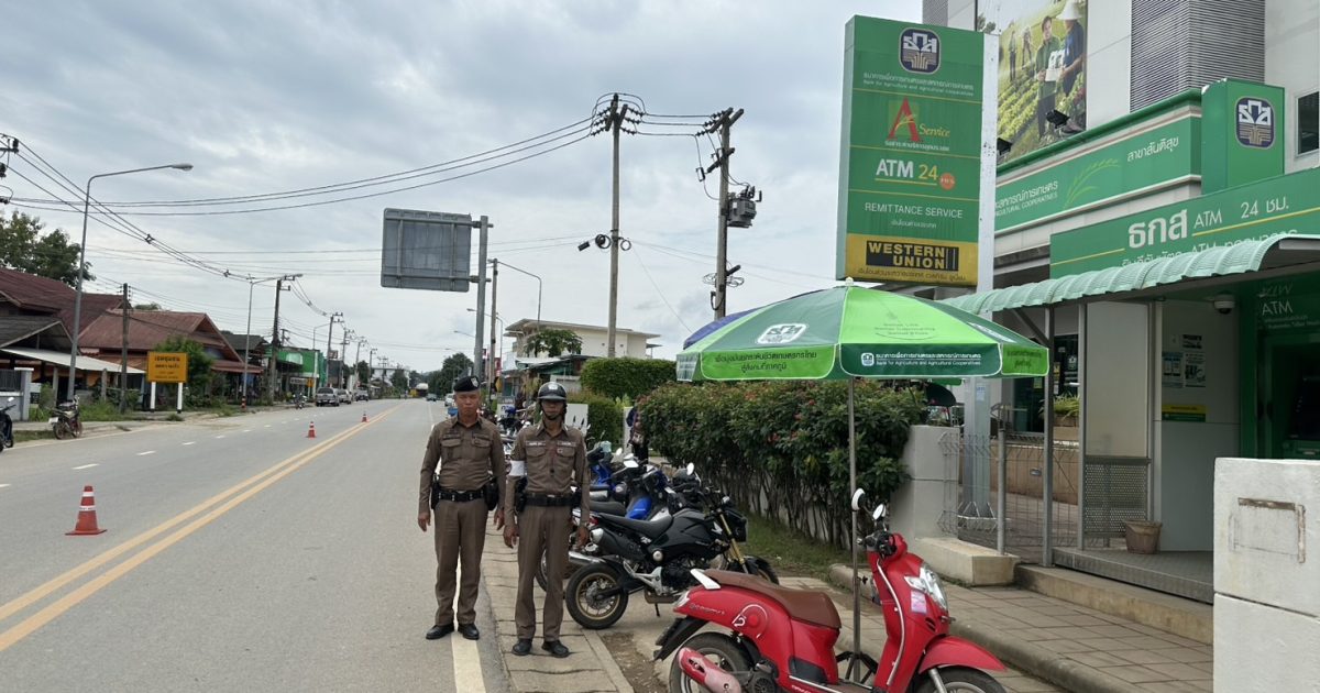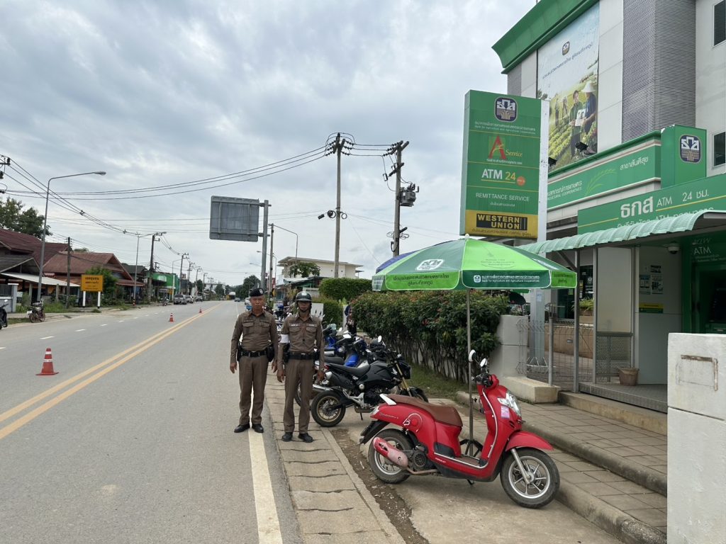 วันที่ (4 ต.ค. 67) เวลาประมาณ 09.00 น. ภายใต้การอำนวยการและสั่งการของ พ.ต.อ.สมชาย กาวิเนตร ผกก.สภ.สันติสุข จว.น่าน , พ.ต.ท.เฉลิมเกียรติ ทำสุข รอง ผกก.ป.สภ.สันติสุขฯ, พ.ต.ต.สมพงษ์ ยั่งยืน สวป.สภ.สันติสุขฯ ได้สั่งการให้ ร.ต.อ.อุทัย รินอินทร์ รอง สวป.สภ.สันติสุขฯ/ทำหน้าที่ร้อยเวร 20 พร้อมด้วย ชุดสายตรวจ ชุดจราจร ดำเนินการ ดังนี้ 1.) เน้นการปรากฎกาย ให้เปิดสัญญาณไฟวับวาบรถยนต์สายตรวจและเพิ่มวงรอบในการออกตรวจบริเวณหน้าธกส.สาขาสันติสุข มากขึ้น โดยให้ประสานกับเจ้าหน้าที่รักษาความปลอดภัยของ ธกส. 2.) จัดเจ้าหน้าที่ตำรวจดูแลรักษาความปลอดภัยประจำ ธกส. สาขาสันติสุข ตั้งแต่เวลาเปิดจนปิดทำการ 3.)จัดวางกรวยยาง ชะลอความเร็วของรถ เพื่อความปลอดภัยของประชาชน เหตุการณ์ทั่วไปปกติ จึงเรียนมาเพื่อโปรดทราบ