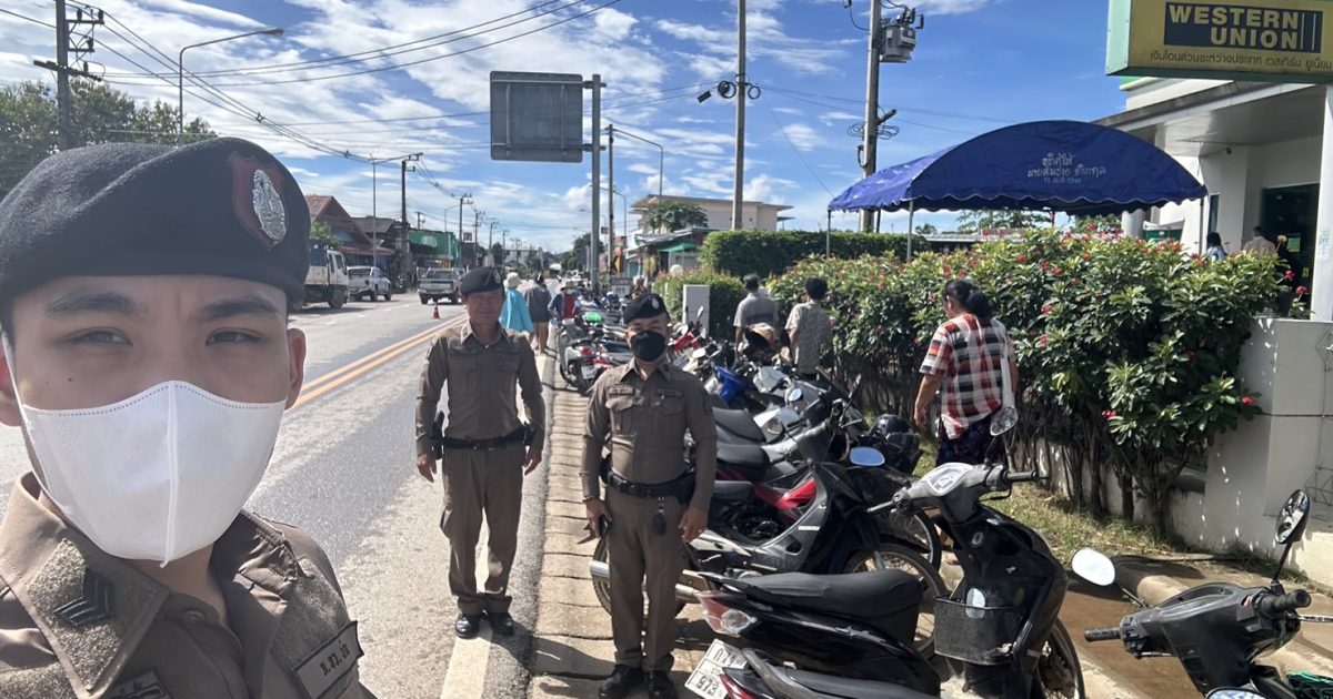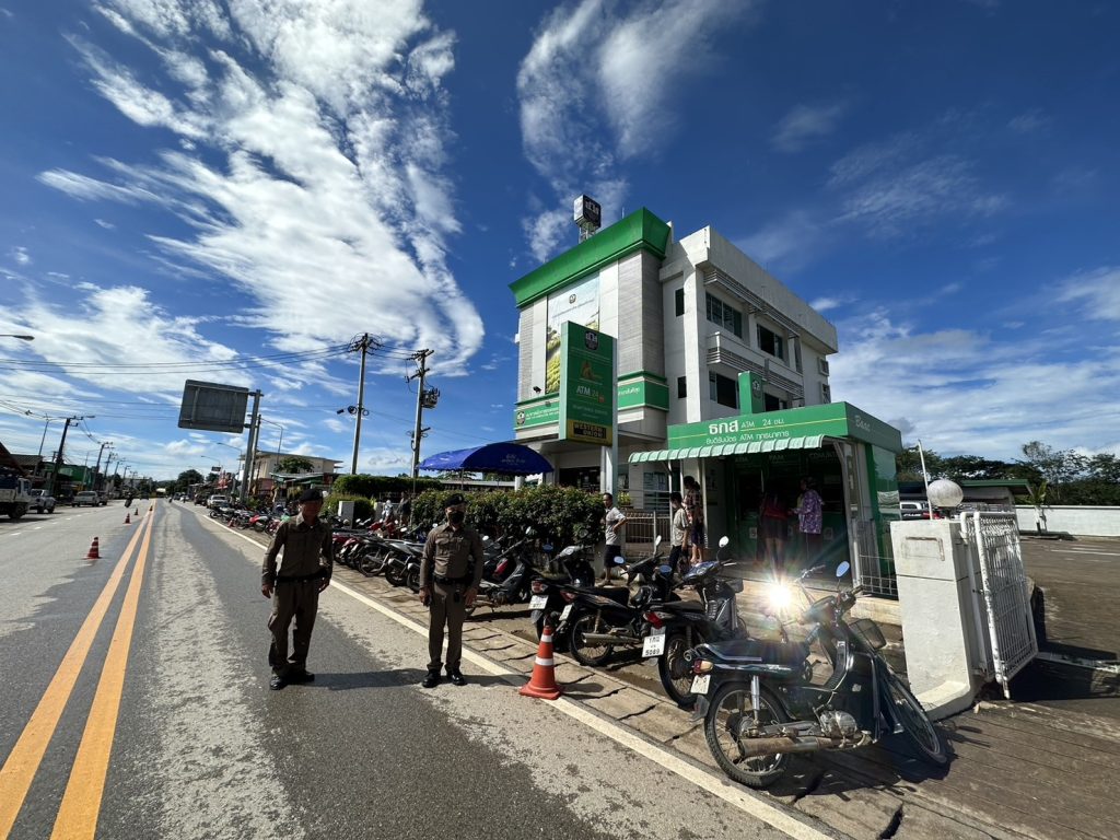 ร.ต.ท.พีระพล อิ่นติ๊บ รอง สวป.สภ.สันติสุขฯ/ทำหน้าที่ร้อยเวร 20 พร้อมด้วย ชุดสายตรวจ ชุดจราจร ดำเนินการ ดังนี้ 1.) เน้นการปรากฎกาย ให้เปิดสัญญาณไฟวับวาบรถยนต์สายตรวจและเพิ่มวงรอบในการออกตรวจบริเวณหน้าธกส.สาขา สันติสุข มากขึ้น โดยให้ประสานกับเจ้าหน้าที่รักษาความปลอดภัยของ ธกส. 2.) จัดเจ้าหน้าที่ตำรวจดูแลรักษาความปลอดภัยประจำ ธกส. สาขาสันติสุข ตั้งแต่เวลาเปิดจนปิดทำการ 3.)จัดวางกรวยยาง ชะลอความเร็วของรถ เพื่อความปลอดภัยของประชาชน เหตุการณ์ทั่วไปปกติ จึงเรียนมาเพื่อโปรดทราบ