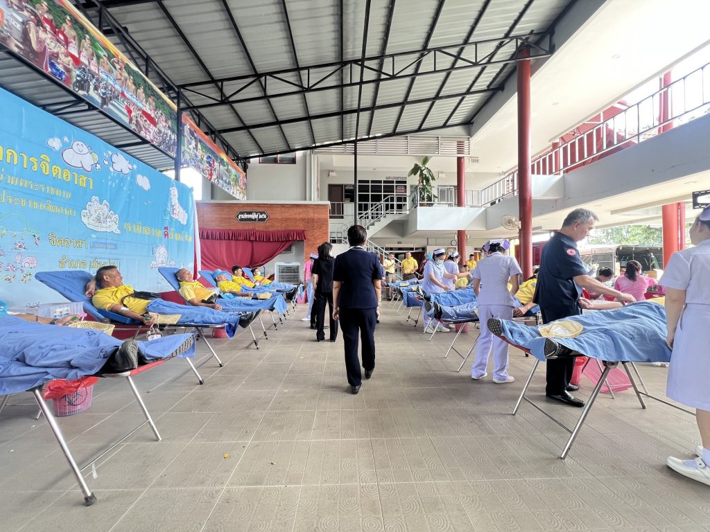 ร่วมกิจกรรมบริจาคโลหิต 8 ตุลาคม 2567 โดย admin / ข่าวประชาสัมพันธ์,งานอำนวยการ ( ต.ค.67) สภ.สันติสุข จว.น่านวันที่ 8 ต.ค. 2567 เวลา 09.00 น. โดยการอำนวยการของ พ.ต.อ.สมชาย กาวิเนตร ผกก.สภ.สันติสุข มอบหมายให้ข้าราชการตำรวจจิตอาสา สภ.สันติสุข จำนวน 5 นาย ร่วมกิจกรรมบริจาคโลหิต เพื่อสร้างจิตสำนึกร่วมกันในการทำความดี ช่วยเหลือเพื่อนมนุษย์ รู้จักเป็นผู้ให้ และสามารถสนับสนุนโลหิตให้แก่ธนาคารเลือด ให้มีเลือดสำรองเพื่อนำไปรักษาผู้ป่วย ณ ลานภัทรพงศ์สินธุ์ ภ.จว.น่าน