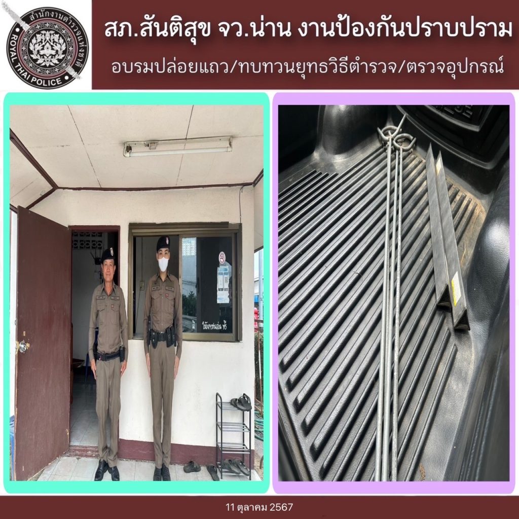 1.การอบรมปล่อยแถวสายตรวจ ทบทวนยุทธวิธี ตรวจอุปกรณ์ประจำกาย อุปกรณ์ประจำรถ ก่อนออกปฏิบัติหน้าที่
