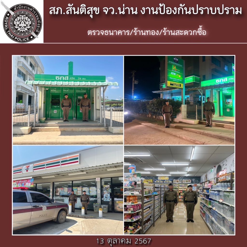 สภ.สันติสุข ภ.จว.น่าน วันที่ 13 ตุลาคม 2567 เวลา 08.00 น.ถึง 08.00 น. ของวันที่ 14 ตุลาคม 2567