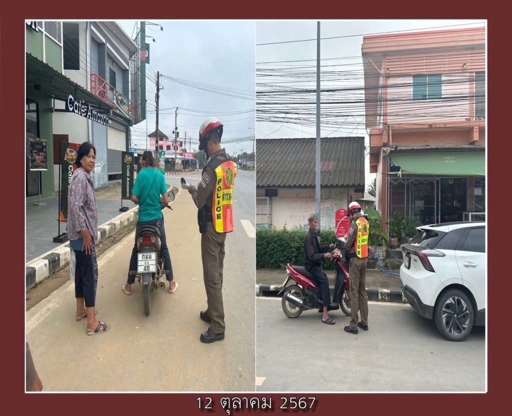 สภ.สันติสุข วันที่ 10 ตุลาคม 2567 เวลา 11.00 – 14.00 น.โดยการอำนวยการ พ.ต.อ.สมชาย กาวิเนตร  ผกก.สภ.สันติสุข ,พ.ต.ท.เฉลิมเกียรติ ทำสุข รอง ผกก.ป.ฯ, พ.ต.ต.สมพงษ์ ยั่งยืน สวป.ฯมอบหมายให้ ร.ต.อ.อุทัย รินอินทร์ รอง สวป.ฯ ร้อยเวร20 พร้อมด้วย สายตรวจ,จราจร  ว.4 ตั้งจุดตรวจกวดขันวินัยจราจร ป้องกัน และ ลด อุบัติเหตุทางถนน ตามรูปแบบTPCC(Police Checkpoint Control) บริเวณสี่แยกห้วยปา ต.ดู่พงษ์ อ.สันติสุข จว.น่าน12