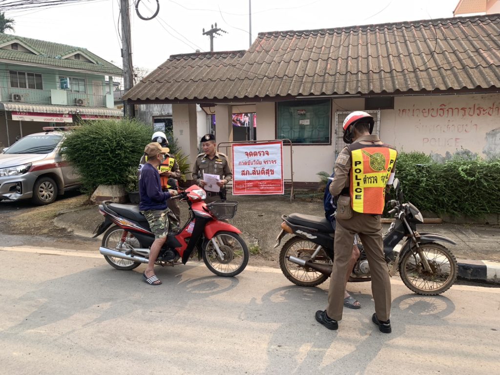 สภ.สันติสุข จว.น่าน วันที่ 25 มีนาคม 2568 เวลา 09.00-11.00 น. โดยการอำนวยการของ พ.ต.อ.สมชาย กาวิเนตร ผกก.สภ.สันติสุข, พ.ต.ท.กรัยฉัตร อินต๊ะพันธ์ รอง ผกก.ป.สภ.สันติสุข มอบหมายให้ พ.ต.ต.สมพงษ์ ยั่งยืน สวป.สภ.สันติสุข พร้อมด้วย ร.ต.อ.บุญยงค์ ณะรินทร์ รอง สว.(ป.)สภ.สันติสุข ร้อยเวร 20 สายตรวจรถยนต์ และ เจ้าหน้าที่ชุดจราจร ทำการตั้งจุดตรวจกวดขันวินัยจราจรบังคับใช้กฎหมายเพื่อ ป้องกัน และลดอุบัติเหตุทางถนน พร้อมกันนี้ได้ประชาสัมพันธ์ให้พี่น้องประชาชนได้รับทราบถึงประโยชน์ในการ สวมหมวกนิรภัย การปฏิบัติตนให้ถูกต้องตามกฎจราจร บนถนนสาย สันติสุข-แม่จริม บริเวณหน่วยบริการประชาชนห้วยปา