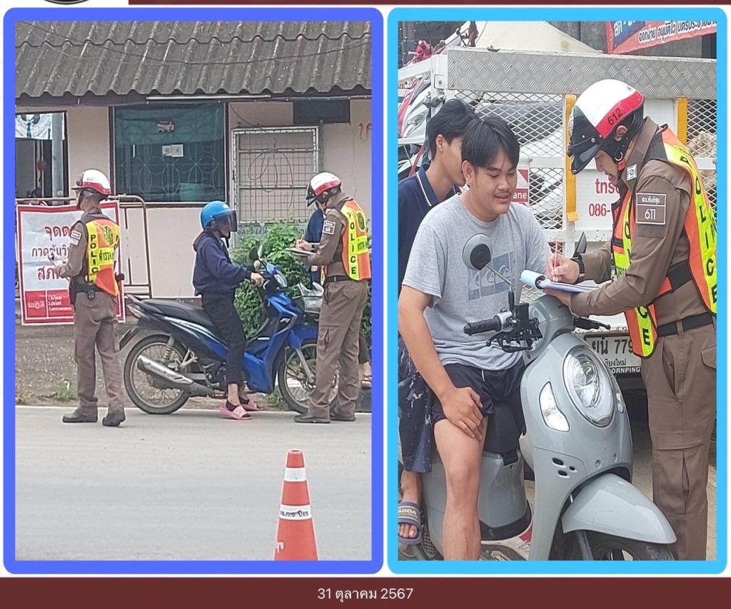 สภ.สันติสุข วันที่ 31 ตุลาคม 2567 เวลา 11.00 – 14.00 น.โดยการอำนวยการ พ.ต.อ.สมชาย กาวิเนตร  ผกก.สภ.สันติสุข จว.น่าน ,พ.ต.ท.เฉลิมเกียรติ ทำสุข รอง ผกก.ป.ฯ, พ.ต.ต.สมพงษ์ ยั่งยืน สวป.ฯ มอบหมายให้ ร.ต.ท.พีระพล อิ่นติ๊บ รอง สว.(ป.)สภ.สันติสุข ฯ ร้อยเวร 20 พร้อมด้วย สายตรวจ,จราจร  ว.4 ตั้งจุดตรวจกวดขันวินัยจราจร ป้องกัน และ ลด อุบัติเหตุทางถนน ตามรูปแบบTPCC(Police Checkpoint Control) บริเวณสี่แยกห้วยปา ต.ดู่พงษ์ อ.สันติสุข จว.น่าน