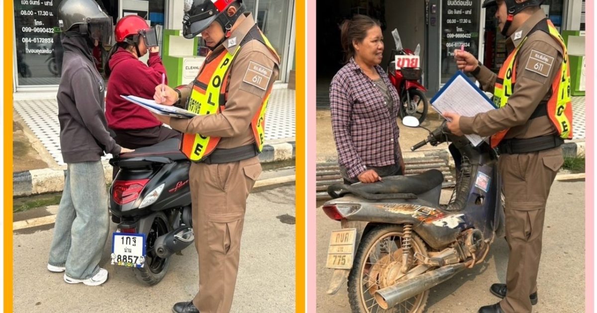 ร.ต.ท.พีระพล อิ่นติ๊บ รอง สว.(ป.)สภ.สันติสุข ฯ ร้อยเวร 20 พร้อมด้วย สายตรวจ,จราจร ว.4 ตั้งจุดตรวจกวดขันวินัยจราจร ป้องกัน และ ลด อุบัติเหตุทางถนน ตามรูปแบบTPCC(Police Checkpoint Control) บริเวณสี่แยกห้วยปา ต.ดู่พงษ์ อ.สันติสุข จว.น่าน