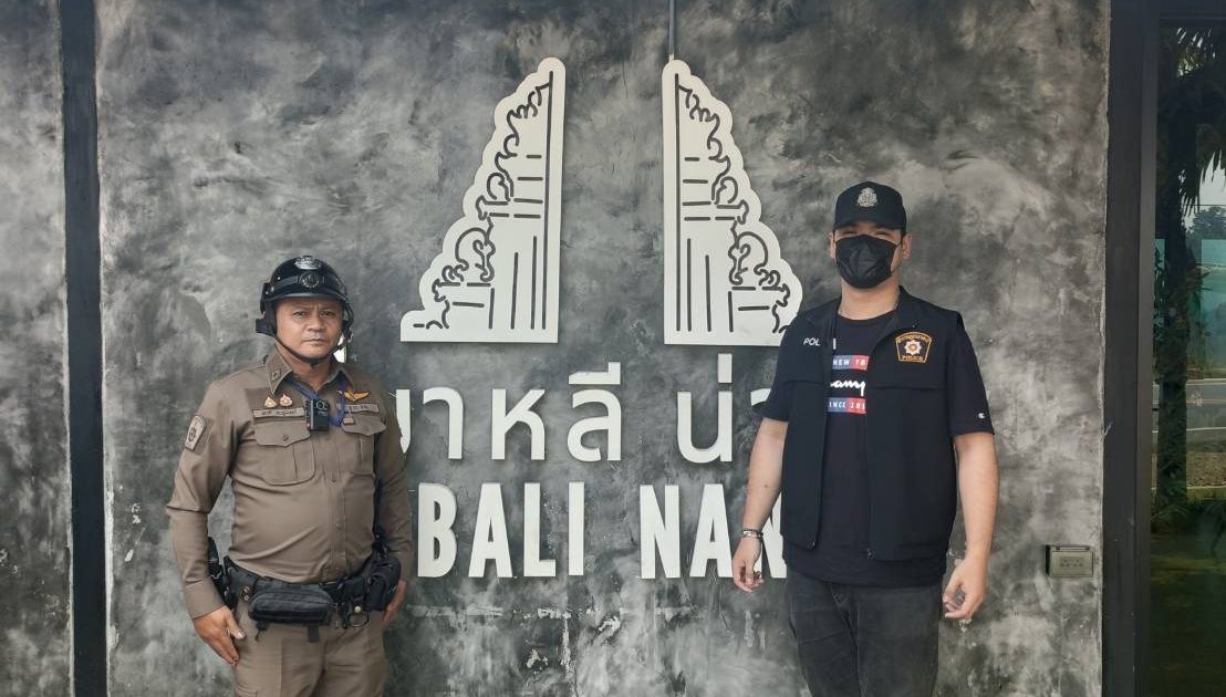 ร.ต.ต.นเรศ ทะภูมินทร์ รองสว.(ป.)สภ.สันติสุขพร้อมด้วยส.ต.ท.นวภัทร สุทธิ ผบ.หมู่(ป.)ฯ