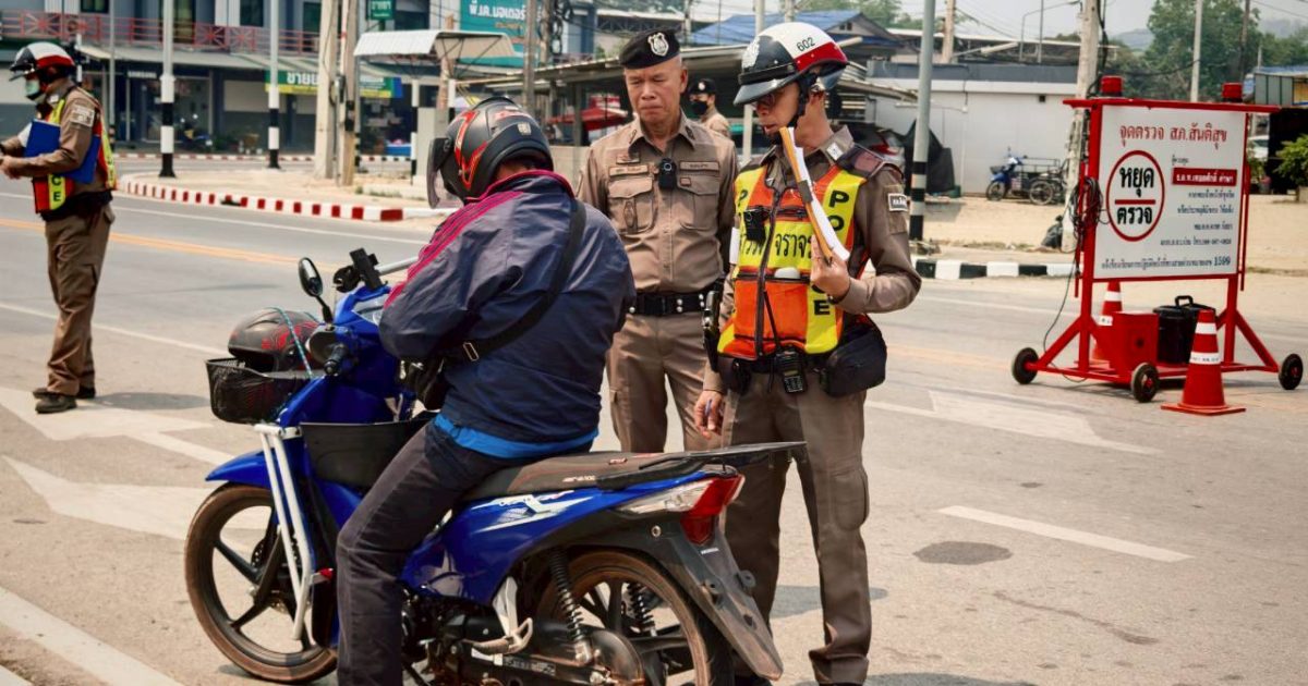 วันที่ 14 เมษายน 2569 เวลา 17.00-19.00 น. โดยการอำนวยการของ พ.ต.อ.สมชาย กาวิเนตร ผกก.สภ.สันติสุข มอบหมายมให้ พ.ต.ท.กรัยฉัตร อินต๊ะพันธ์ รอง ผกก.ป.สภ.สันติสุข พร้อมด้วย ร.ต.อ.อุทัย รินอินทร์ รอง สวป.สภ.สันติสุข ร้อยเวรป้องกันปรามปราม พร้อมด้วยสายตรวจรถยนต์ และเจ้าหน้าที่จราจร ได้ร่วมกันอำนวยความสะดวกการจราจร ให้แก่ผู้ใช้รถใช้ถนน และตั้งจุดตรวจกวดขันวินัยจราจร (ข้อหาเมาแล้วขับ) ช่วงเทศกาลสงกรานต์ 2569