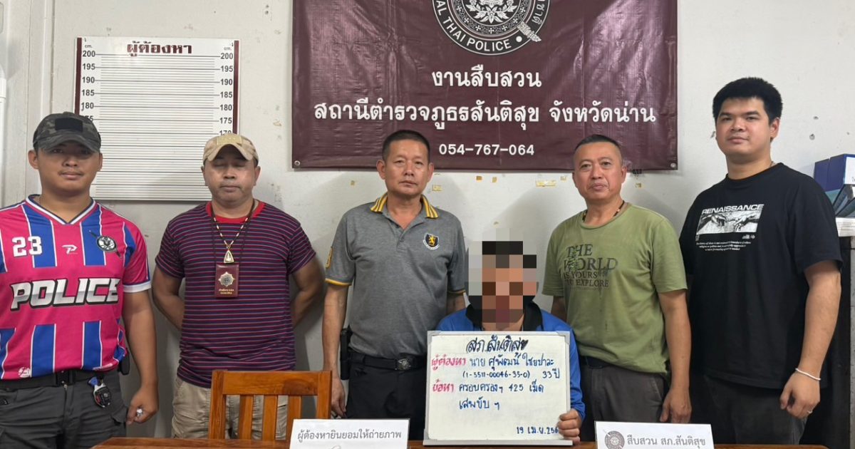 สภ.สันติสุข จว.น่าน รายงานผลการจับกุมผู้ต้องหา ในวันที่ 19 เมษายน 2569 จำนวน 1 ราย 1 คน ดังนี้