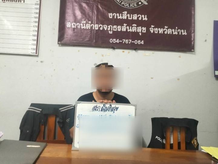 สภ.สันติสุข จว.น่าน วันที่ 24 มีนาคม 2568 เวลาประมาณ 17.00 น. อำนวยการโดย พ.ต.อ.สมชาย กาวิเนตร ผกก.สภ.สันติสุข จว.น่าน ,พ.ต.ท.กรัยฉัตร อินต๊ะพันธ์ รอง ผกก.ป.สันติสุข , พ.ต.ท.กชกรรณ พุทธจันทร์ รอง ผกก.สส.สภ.สันติสุข , พ.ต.ต.สมพงษ์ ยั่งยืน สวป.สภ.สันติสุข ตำรวจชุดจับกุมนำโดย พ.ต.ต.ชนาธิป ขันทะยศ , ร.ต.อ.กานต์ดำรัส วงศ์สมานใจ, ร.ต.ท.สุรพล ไชยอ้าย , จ.ส.ต.วันชัย พรมวังขวา , จ.ส.ต.เอกมงคล ศรีรินติ๊บ , ส.ต.ท.นวภัทร สุทธิ , ส.ต.ต.กันตพงศ์ สวนยศ