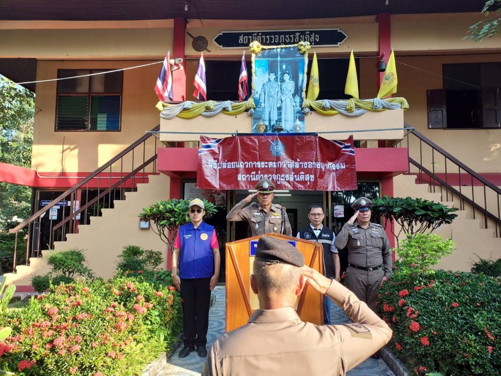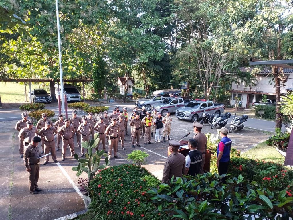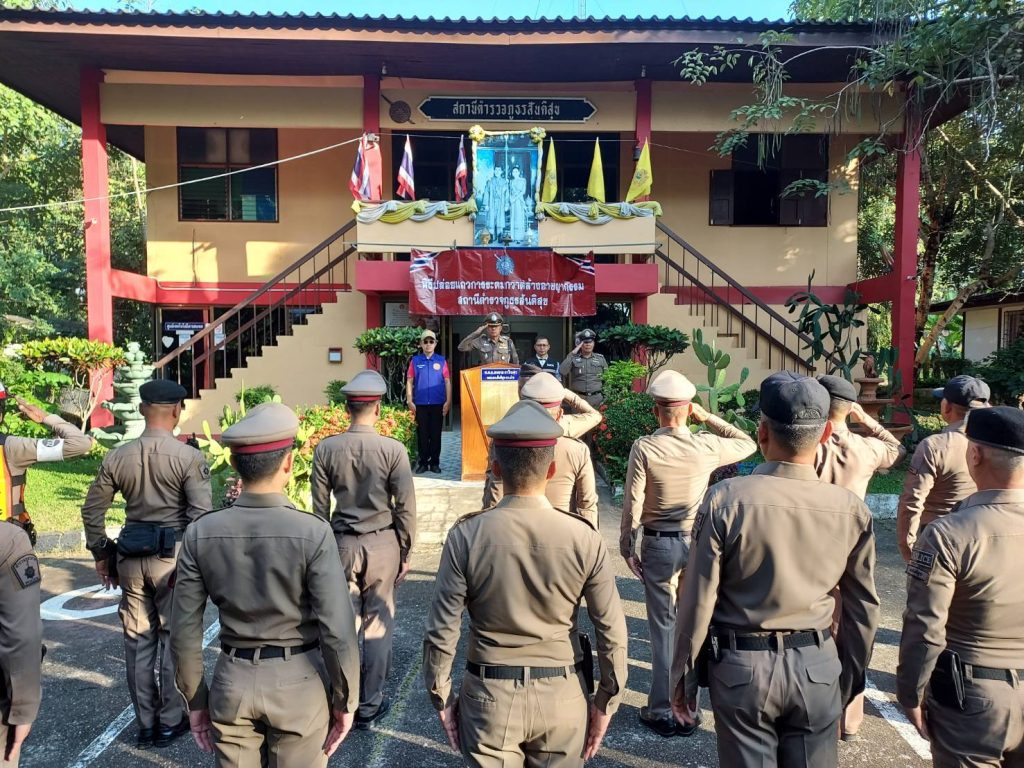 พ.ต.ท.เฉลิมเกียรติ ทำสุข รอง ผกก.ป.สภ.สันติสุข ฯ, พ.ต.ท.กชกรรณ พุทธจันทร์ รอง ผกก.สส.สภ.สันติสุขฯ ,พ.ต.ต.สมพงษ์ ยั่งยืน สวป.สภ.สันติสุข ฯ,เจ้าหน้าที่ฝ่ายปกครอง อำเภอสันติสุข , อาสาสมัครรักษาดินแดนอำเภอสันติสุข และข้าราชการตำรวจ สภ.สันติสุข ฯ ปล่อยแถว ณ บริเวณ ลานหน้าสภ.สันติสุข ฯ