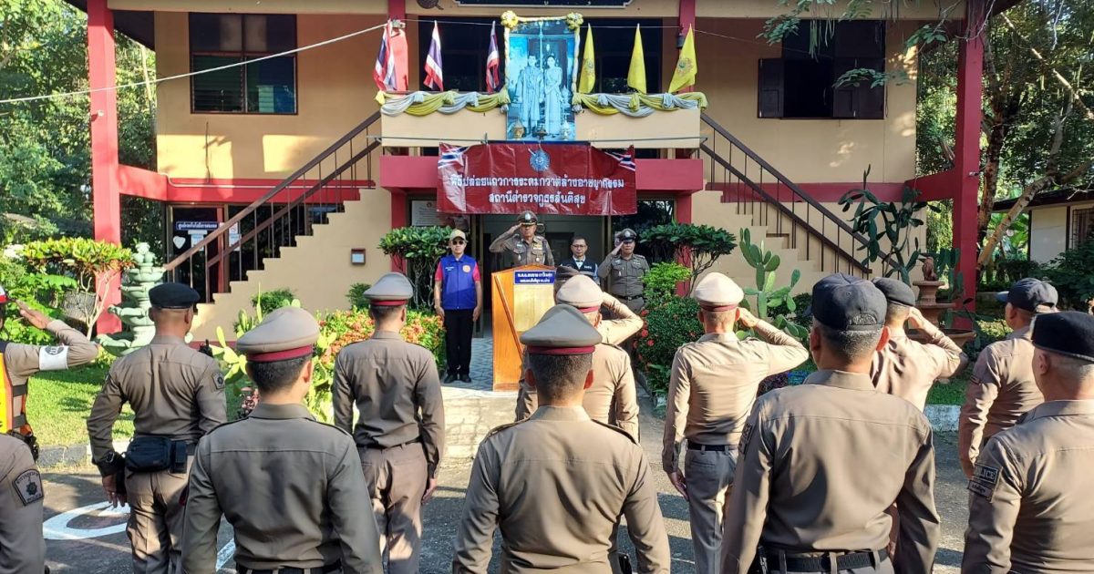 พ.ต.อ.สมชาย กาวิเนตร ผกก.สภ.สันติสุข ฯ เป็นประธานปล่อยแถวระดมกวาดล้างอาชญากรรมป้องกันปราบปรามอาชญากรรมการรักษาความสงบเรียบร้อยความปลอดภัยในชีวิตและทรัพย์สินของประชาชนและนักท่องเที่ยวในช่วงเทศกาลประเพณีลอยกระทง ปี 2567 พร้อมด้วย พร้อมด้วย นายหมวดเอกสิงห์ทอง สมพรชัยนิมิตร ปลัดอำเภอสันติสุขหัวหน้าฝ่ายความมั่นคง ฯ ,