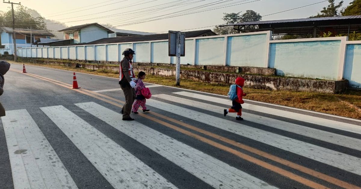สภ.สันติสุข ฯ อำนวยความสะดวกด้านการจราจรหน้าโรงเรียนบ้านศรีนาม่าน