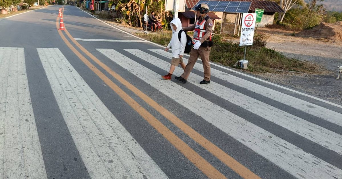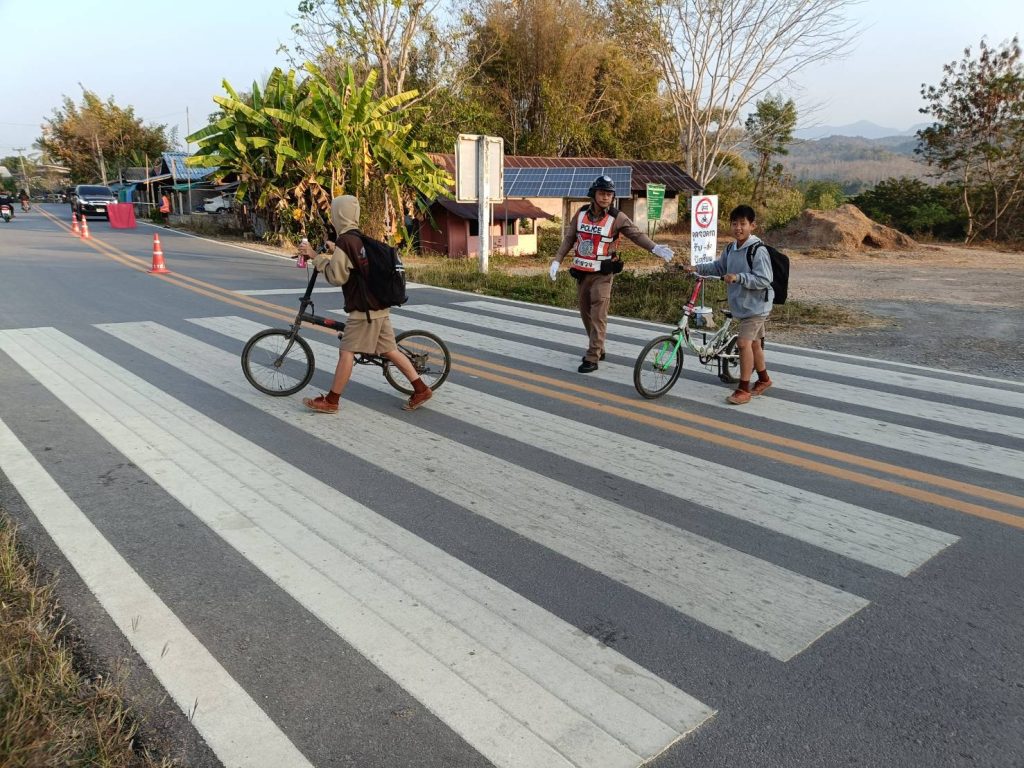 สภ.สันติสุข ฯ อำนวยความสะดวกด้านการจราจรหน้าโรงเรียนบ้านศรีนาม่าน
