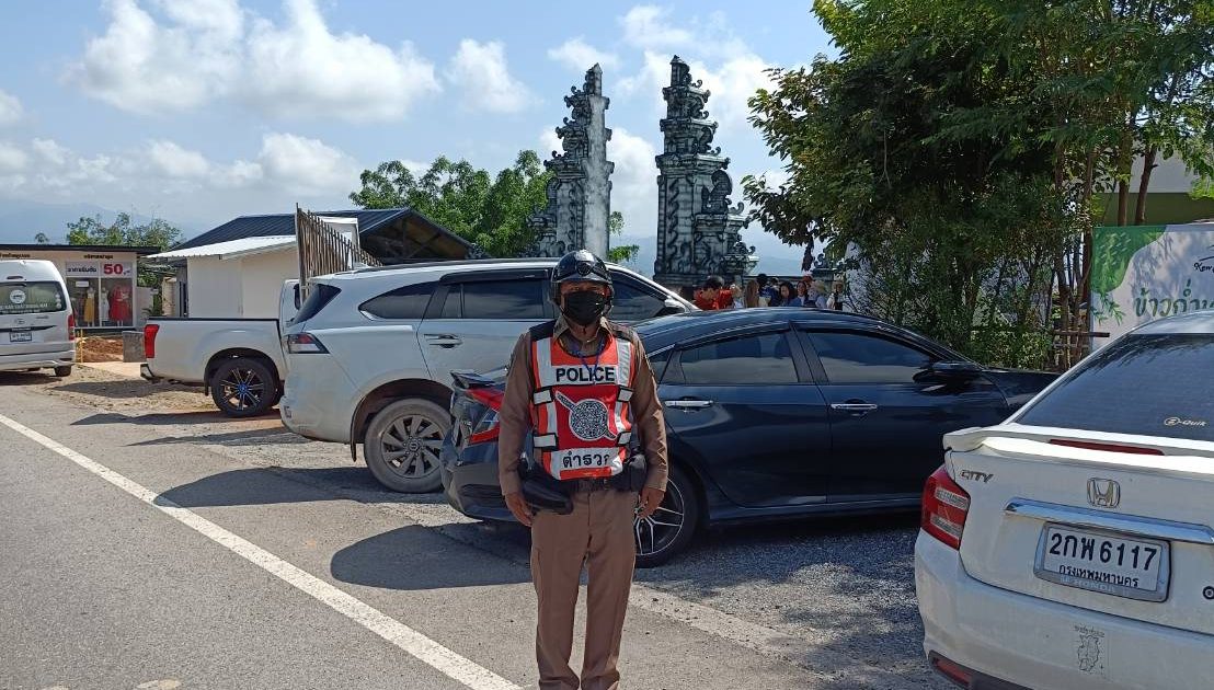 โดยการอำนวยการของ พ.ต.อ.สมชาย กาวิเนตร ผกก.สภ.สันติสุขฯ , พ.ต.ท.เฉลิมเกียรติ ทำสุข รองผกก.ป.ฯและพ.ต.ต.สมพงษ์ ยั่งยืน สวป.ฯมอบหมายให้ ร.ต.ต.นเรศ ทะภูมินทร์ รอง สว.(ป.) สภ.สันติสุข ปฏิบัติหน้าที่ประจำหน่วยบริการประชาชนกิ่วม่วงได้ออกตรวจพื้นที่เขตรับผิดชอบดังนี้ -คุ้มเวียงพิงค์ คอฟฟี่ฯ -กิ่วม่วงฮิลล์ -สุดขอบฟ้า คาเฟ่ฯ -เดอะวิว@กิ่วม่วง -ม่อนกิ่วม่วง -วิวกิ่วม่วง360องศา -ไร่ปางแกะ -กิ่วม่วง เบสแคมป์ และปฏิบัติหน้าที่อำนวยความสะดวกด้านการจราจรบนถนนหน้าประตูบาหลี/กิ่วม่วง การจราจรช่วงเช้า – บ่าย