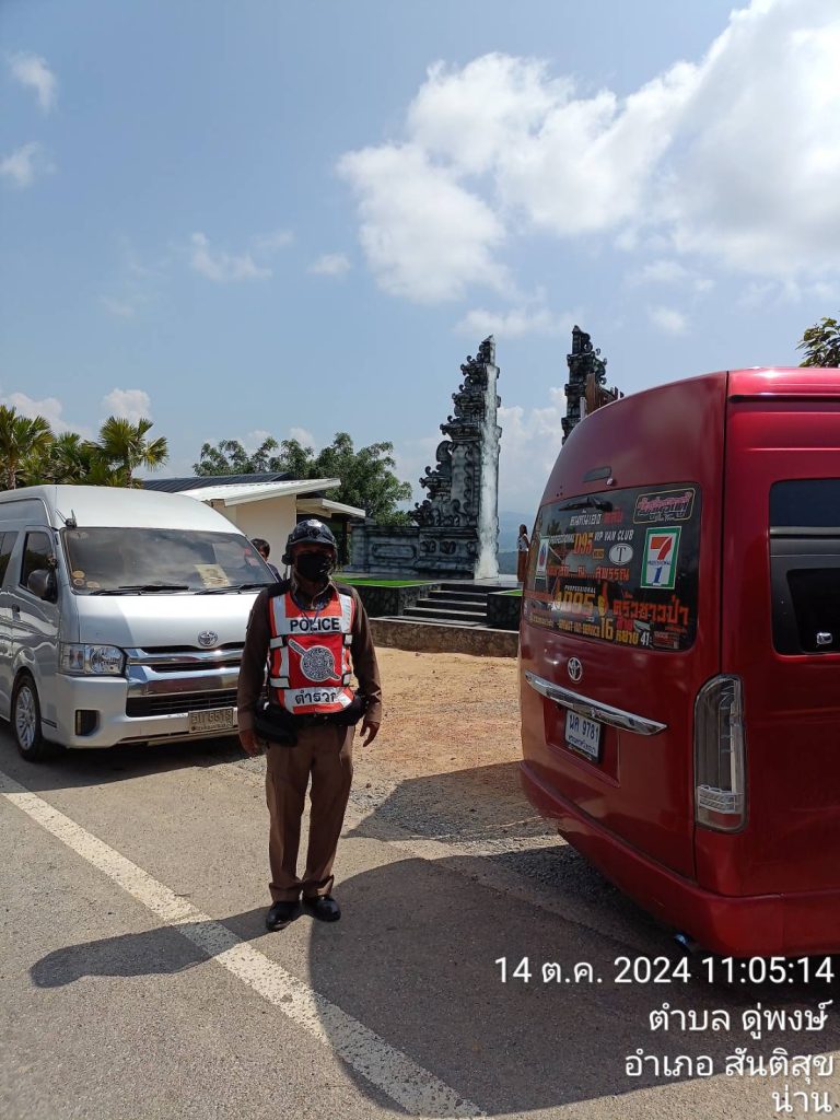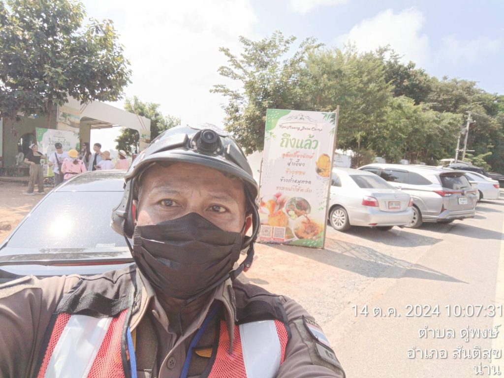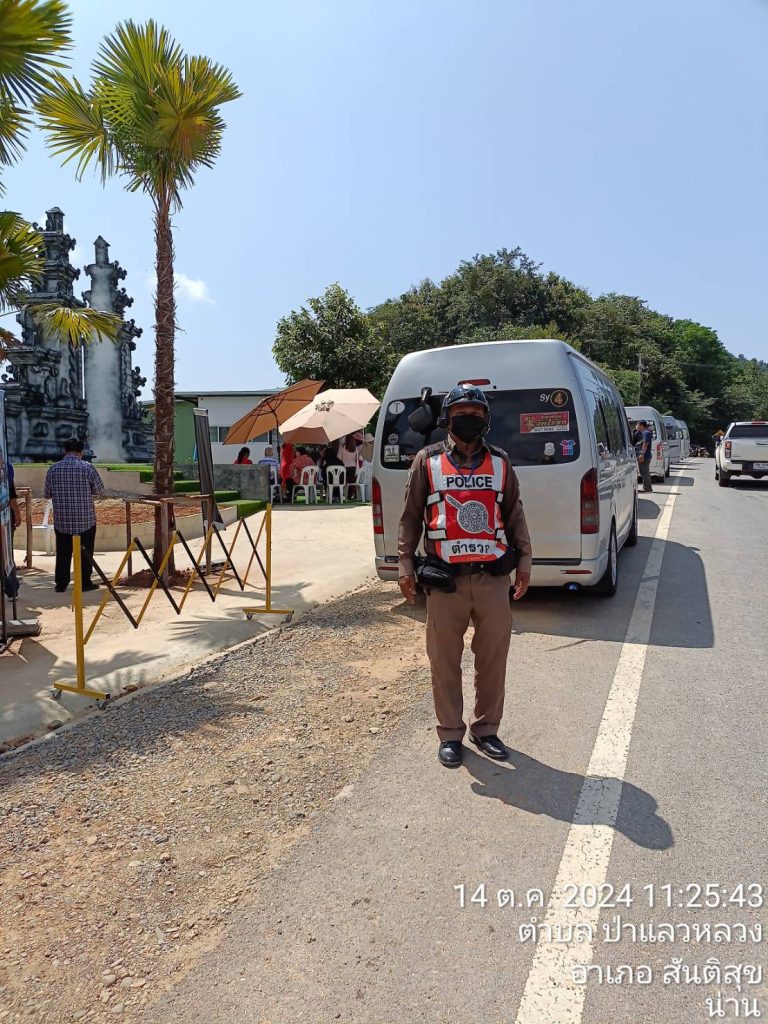 วันที่ 14 ตุลาคม 2567 ตั้งแต่ เวลา 08:30 – 15.30 น. โดยการอำนวยการของ พ.ต.อ.สมชาย กาวิเนตร ผกก.สภ.สันติสุข จว.น่าน , พ.ต.ท.เฉลิมเกียรติ ทำสุข รองผกก.ป.ฯและพ.ต.ต.สมพงษ์ ยั่งยืน สวป.ฯ มอบหมายให้