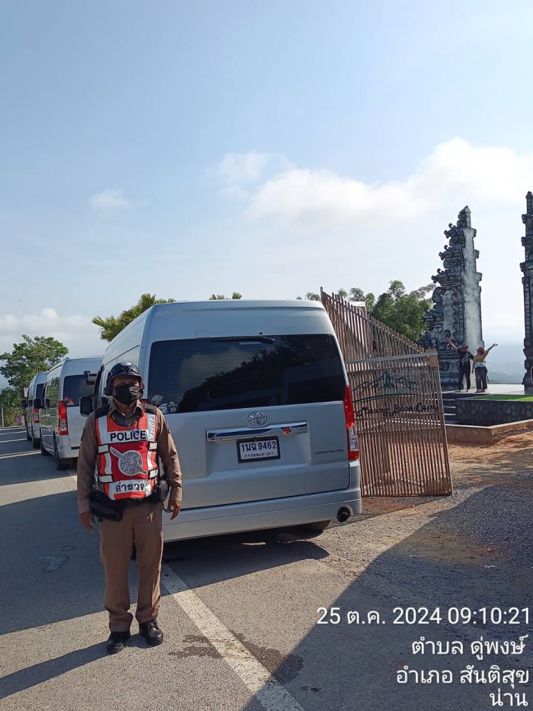 วันที่ 25 ตุลาคม 2567 ตั้งแต่ เวลา 08:30 – 15.30 น. โดยการอำนวยการของ พ.ต.อ.สมชาย กาวิเนตร ผกก.สภ.สันติสุข จว.น่าน , พ.ต.ท.เฉลิมเกียรติ ทำสุข รองผกก.ป.ฯและพ.ต.ต.สมพงษ์ ยั่งยืน สวป.ฯ มอบหมายให้ ร.ต.ต.นเรศ ทะภูมินทร์ รอง สว.(ป.) สภ.สันติสุข ปฏิบัติหน้าที่ประจำหน่วยบริการประชาชนกิ่วม่วงได้ออกตรวจพื้นที่เขตรับผิดชอบดังนี้