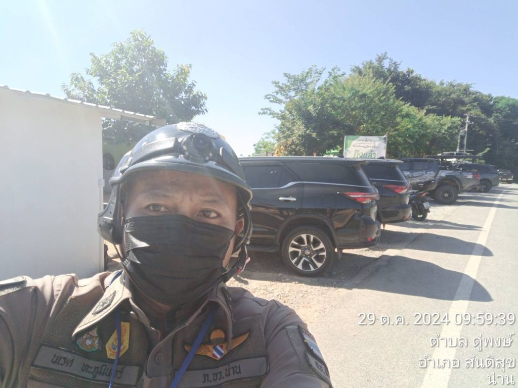 วันที่ 29 ตุลาคม 2567 ตั้งแต่ เวลา 08:30 – 15.30 น. โดยการอำนวยการของ พ.ต.อ.สมชาย กาวิเนตร ผกก.สภ.สันติสุข จว.น่าน , พ.ต.ท.เฉลิมเกียรติ ทำสุข รองผกก.ป.ฯและพ.ต.ต.สมพงษ์ ยั่งยืน สวป.ฯ มอบหมายให้
