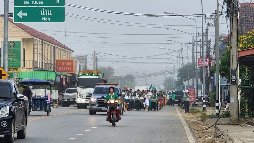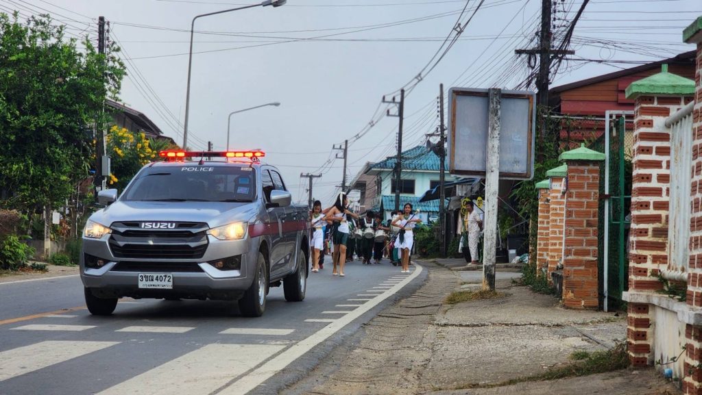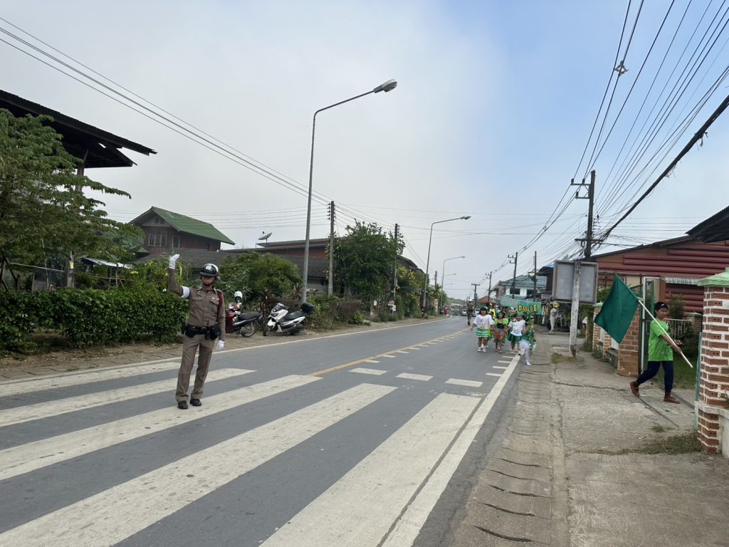 อำนวยความสะดวกการจราจร ขบวน รร.บ้านดู่พงษ์ จัดกิจกรรมการแข่งขันกรีฑาสีสัมพันธ์ ดู่พงษ์เกมส์