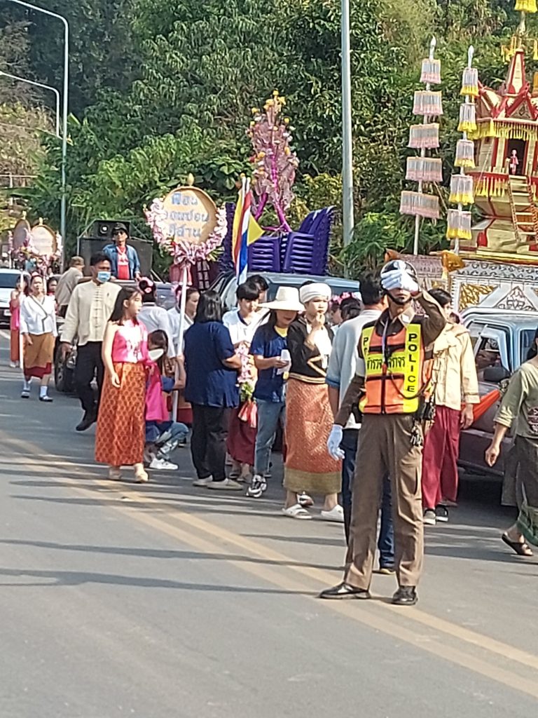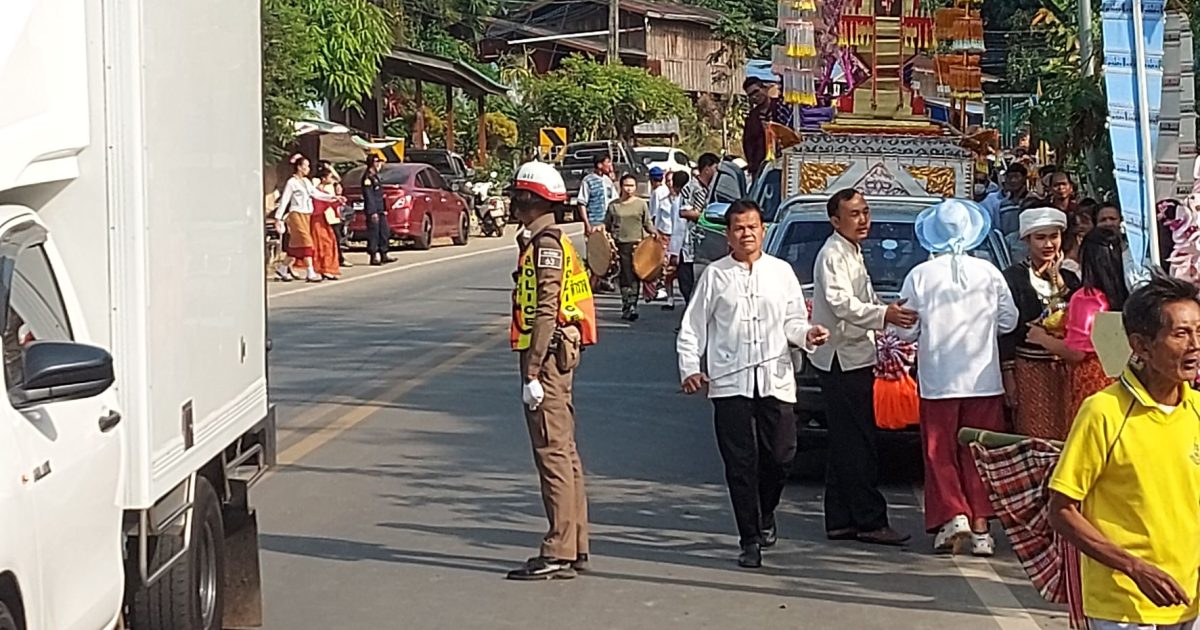 อำนวยความสะดวกด้านการจราจรงานแห่ครัวตานล้านนาบ้านกิ่วม่วง