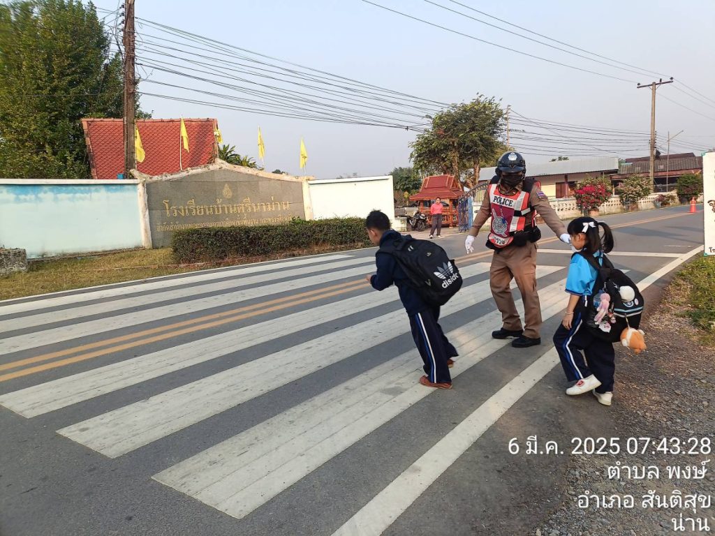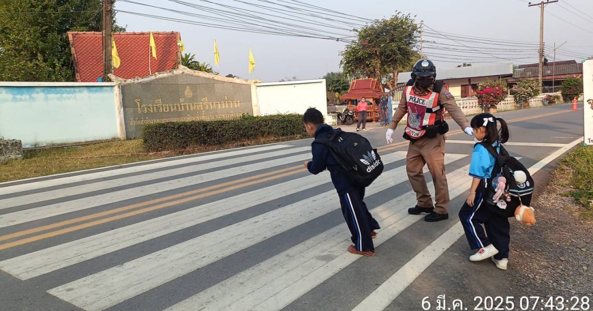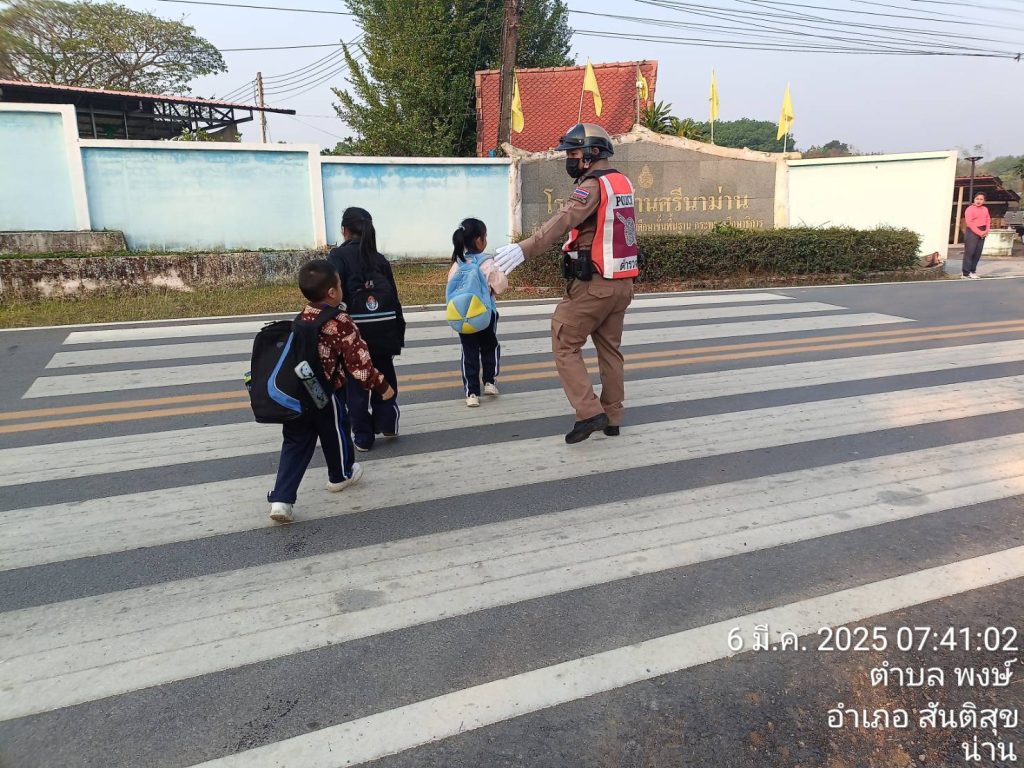 อำนวยความสะดวกด้านการจราจรหน้าโรงเรียนบ้านศรีนาม่าน