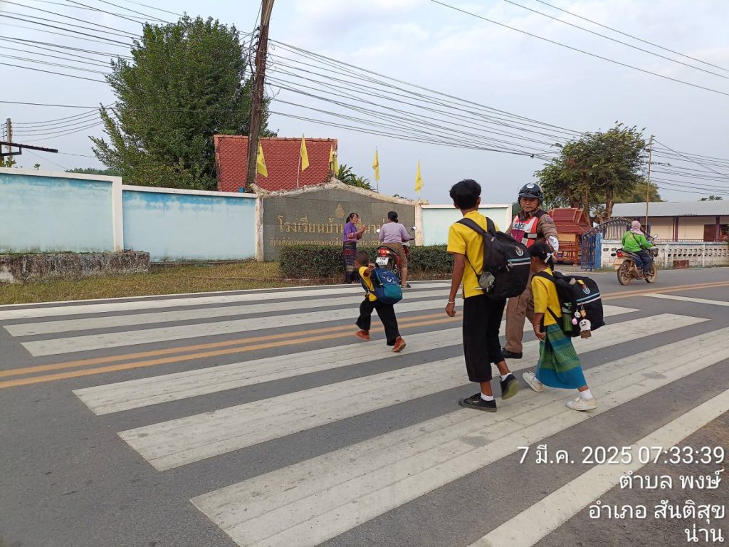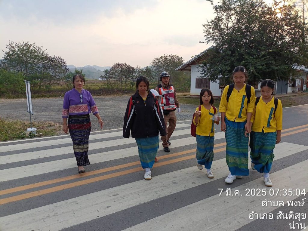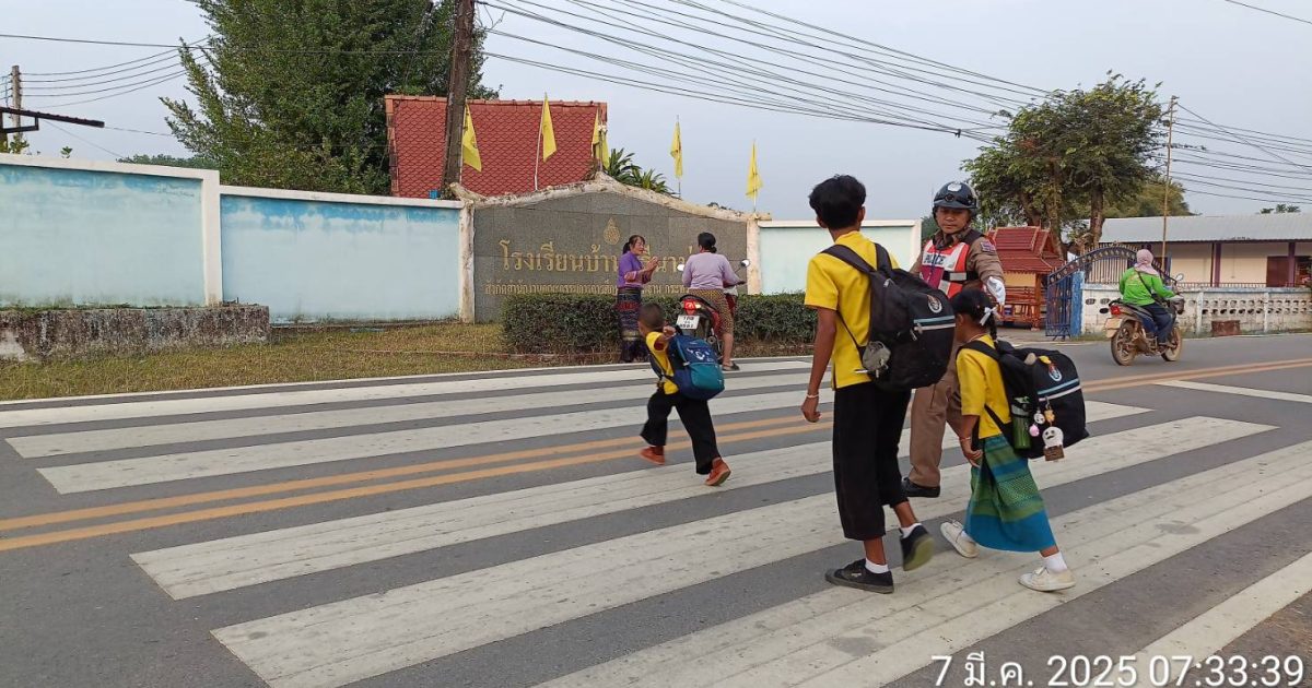 อำนวยความสะดวกด้านการจราจรหน้าโรงเรียนบ้านศรีนาม่าน