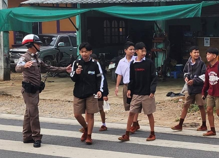 เจ้าหน้าที่ตำรวจจราจรอำนวยความสะดวกด้านจราจร หน้าสถานศึกษา