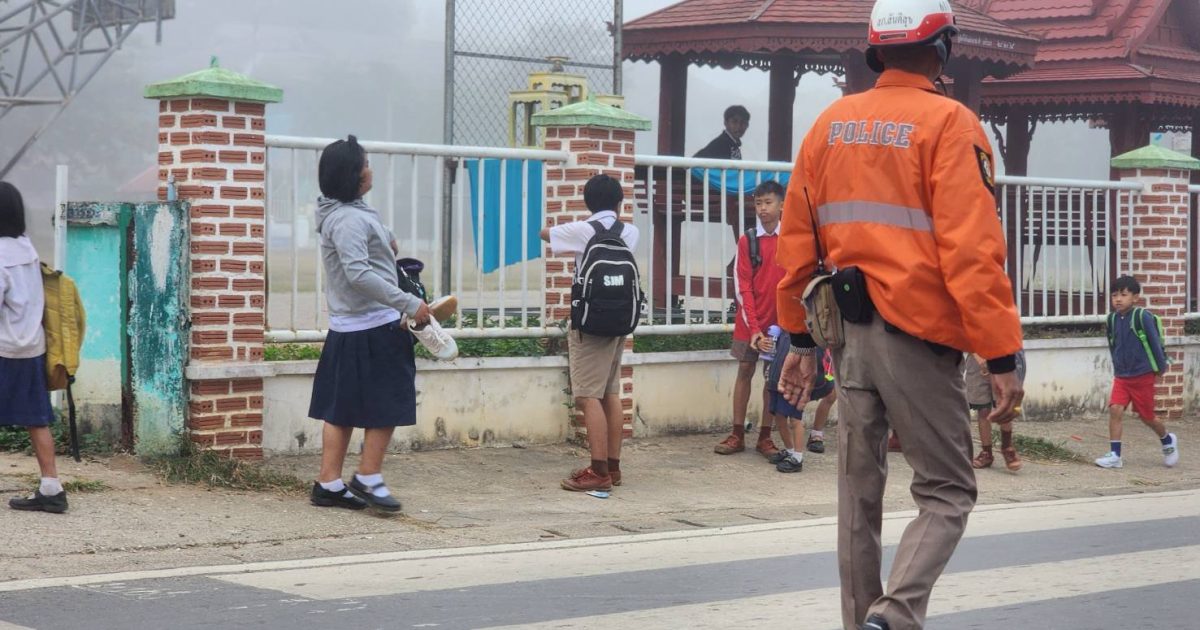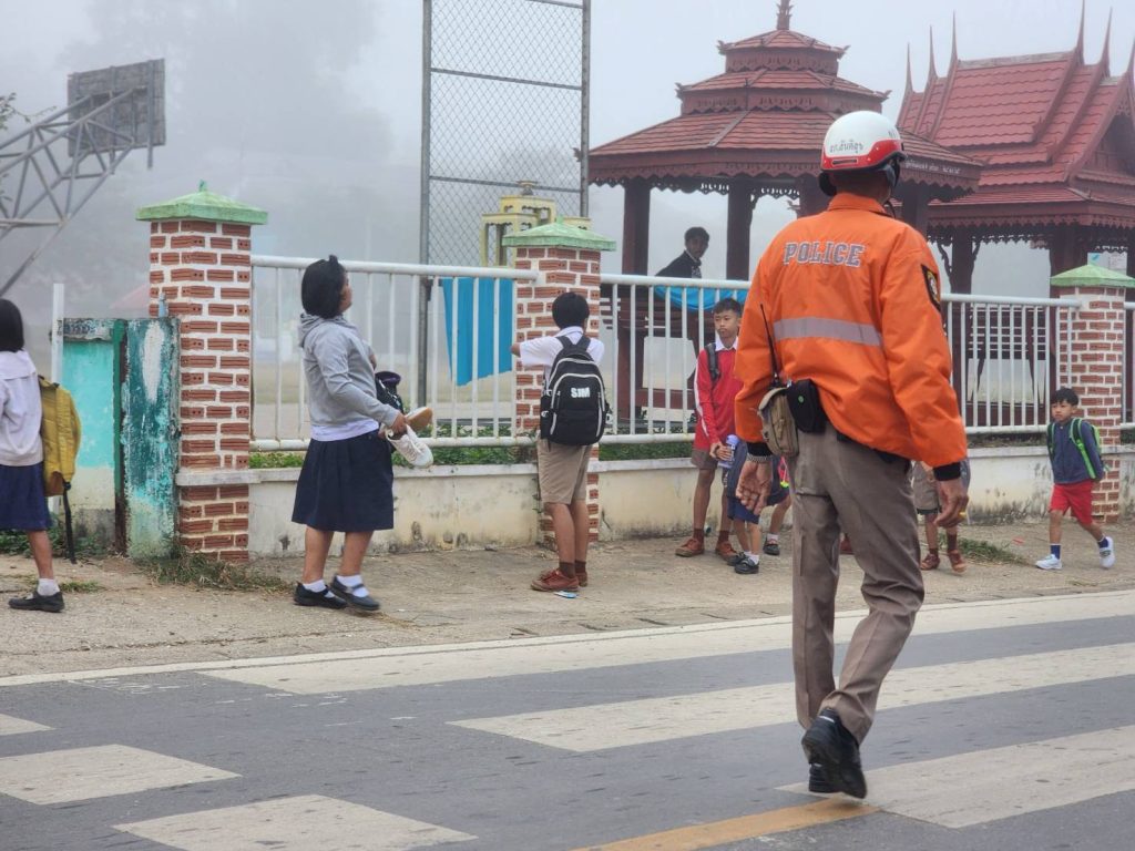 เจ้าหน้าที่ตำรวจจราจรอำนวยความสะดวกด้านจราจร หน้าสถานศึกษา