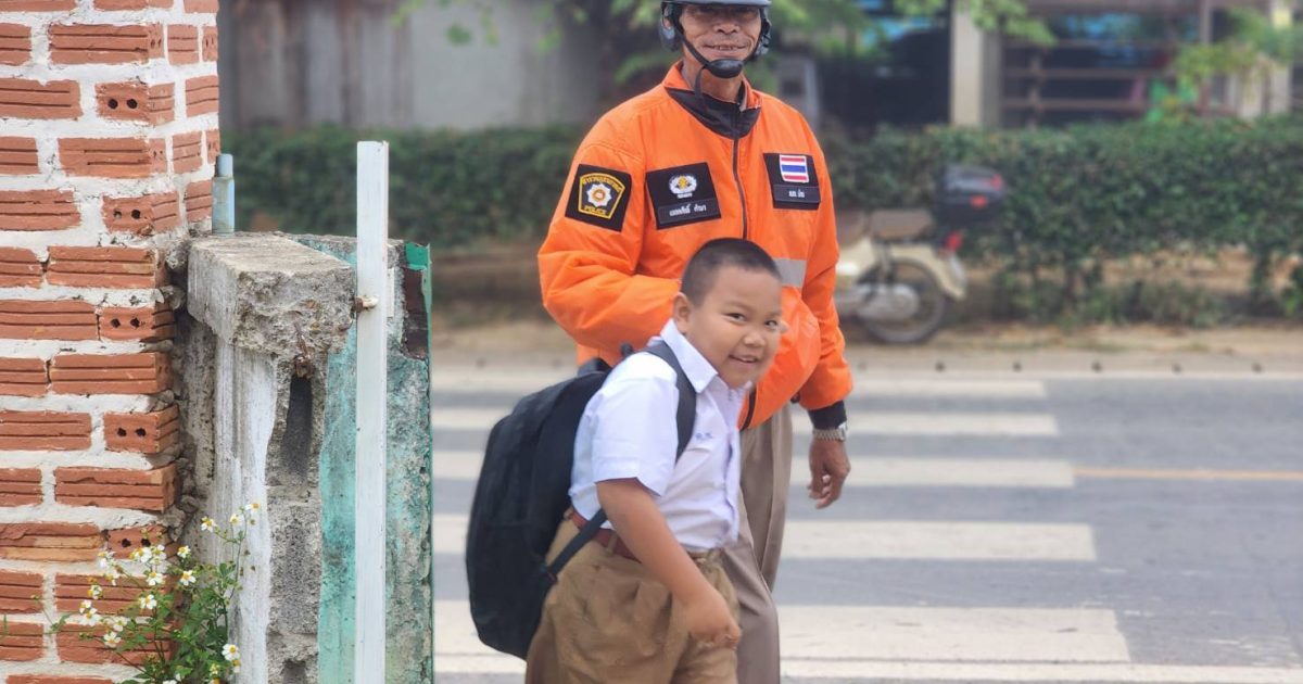 เจ้าหน้าที่ตำรวจจราจรอำนวยความสะดวกด้านจราจร หน้าสถานศึกษา