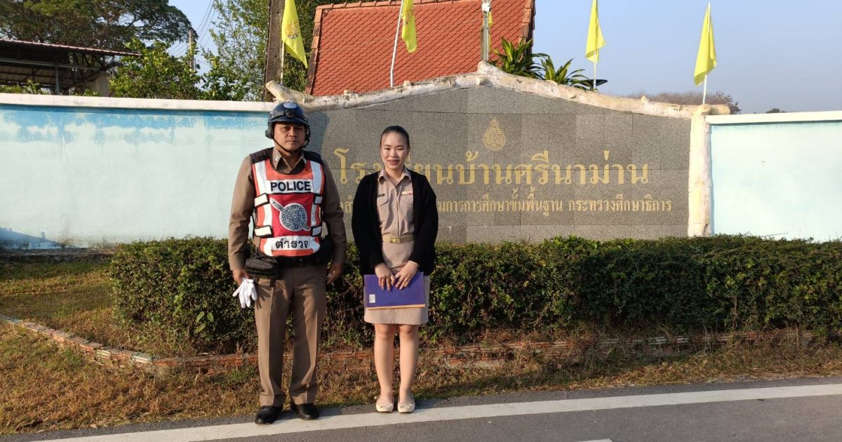 สภ.สันติสุข ภ.จว.น่าน วันที่ 3 กุมภาพันธ์ 2568 เวลา 08.30 น. โดยการอำนวยการของ พ.ต.อ.สมชาย กาวิเนตร ผกก.สภ.สันติสุข จว.น่าน , พ.ต.ท.เฉลิมเกียรติ ทำสุข รองผกก.ป.ฯและพ.ต.ต.สมพงษ์ ยั่งยืน สวป.ฯ มอบหมายให้ ร.ต.ต.นเรศ ทะภูมินทร์ รอง สว.(ป.) สภ.สันติสุข ปฏิบัติหน้าที่ประจำหน่วยบริการประชาชนกิ่วม่วงและเป็นเจ้าหน้าที่ตำรวจผู้รับผิดชอบโครงการประสานโรงเรียน 1 ตำรวจ 1 โรงเรียนได้ออกตรวจเยี่ยมพบปะครู-นักเรียนโรงเรียนบ้านศรีนาม่านได้รับการต้อนรับ จาก ครูโรงเรียนบ้านศรีนาม่านได้พูดคุยสอบถามปรึกษาปัญหาต่างๆภายในโรงเรียนไม่พบว่ามีปัญหาแต่อย่างใด. ได้อำนวยความสะดวกด้านการจราจรหน้าโรงเรียนบ้านศรีนาม่าน ในระหว่างออกตรวจเยี่ยมและอำนวยความสะดวกด้านการจราจรเหตุการณ์ทั่วไปปกติ
