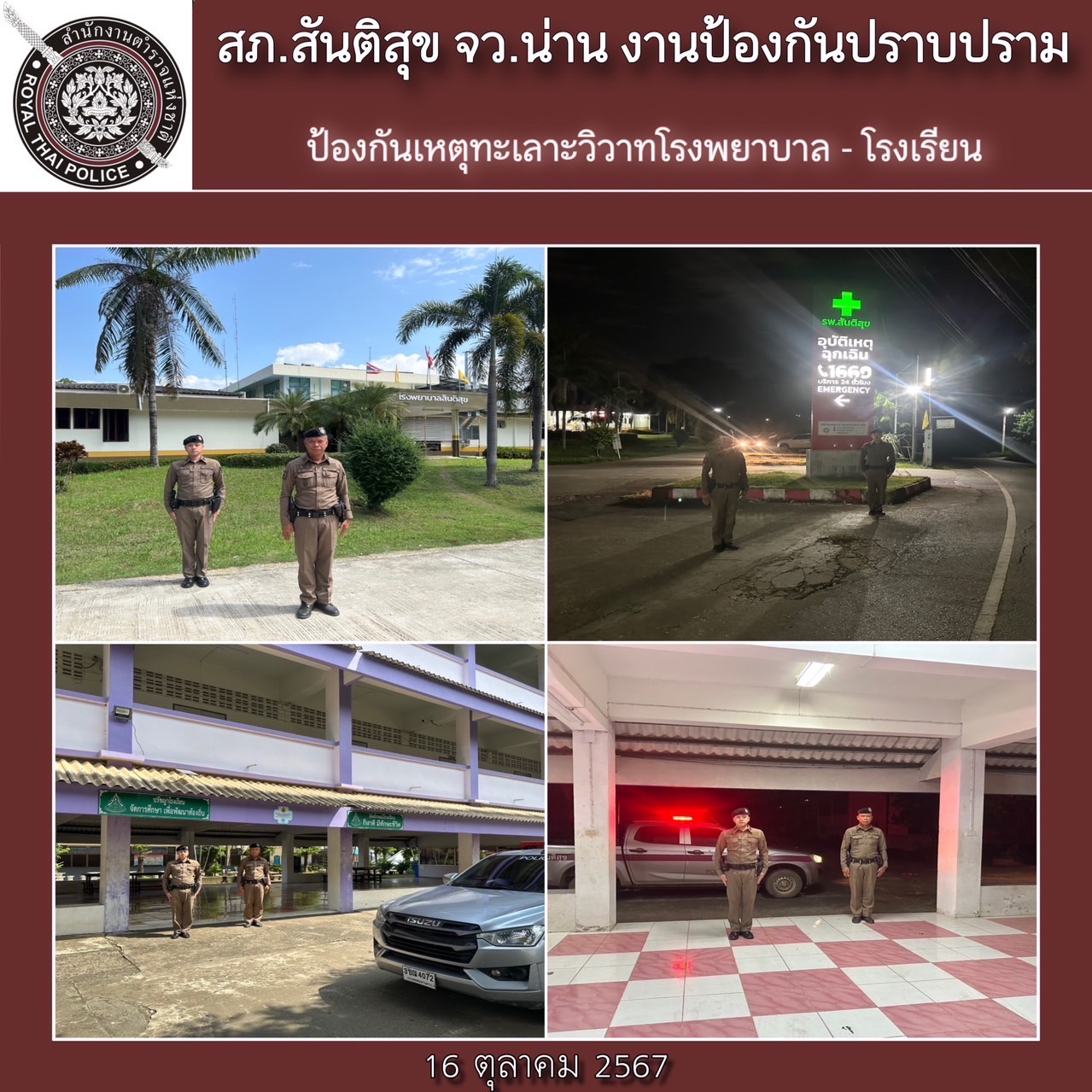 สภ.สันติสุข ภ.จว.น่าน วันที่ 16 ตุลาคม2567 เวลา 09.00-23.00 น. โดยการอำนวยการของ พ.ต.อ.สมชาย กาวิเน