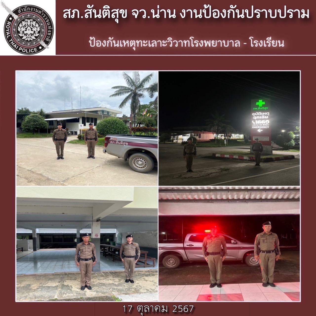 สภ.สันติสุข ภ.จว.น่าน วันที่ 17 ตุลาคม 2567 เวลา 08.00 น.ถึง 08.00 น. ของวันที่ 18 ตุลาคม 2567 โดย