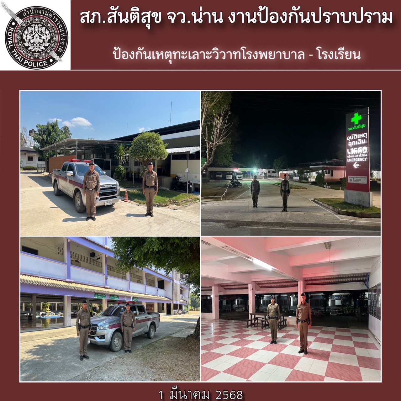 สภ.สันติสุข ภ.จว.น่าน วันที่ 1 มีนาคม 2568 โดยการอำนวยการของพ.ต.อ.สมชาย กาวิเนตร ผกก.ฯ พ.ต.ท.เฉลิ