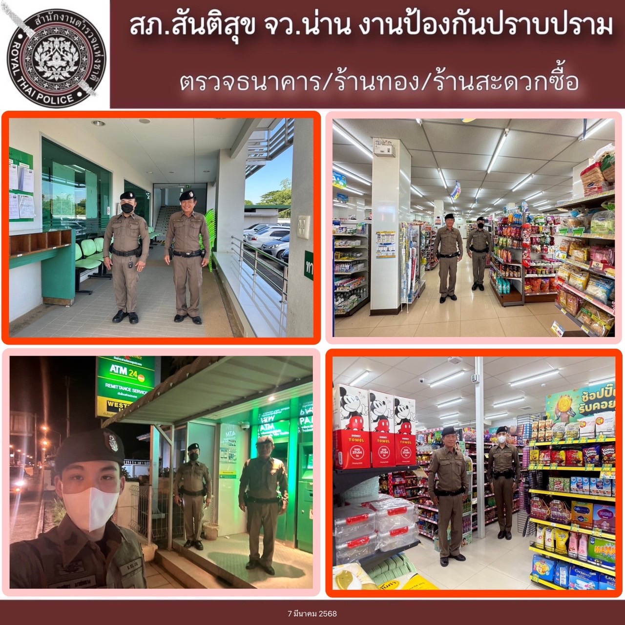 สภ.สันติสุข ภ.จว.น่าน วันที่ 8 มีนาคม 2568 โดยการอำนวยการของ พ.ต.อ.สมชาย กาวิเนตร ผกก.สภ.สันติสุข