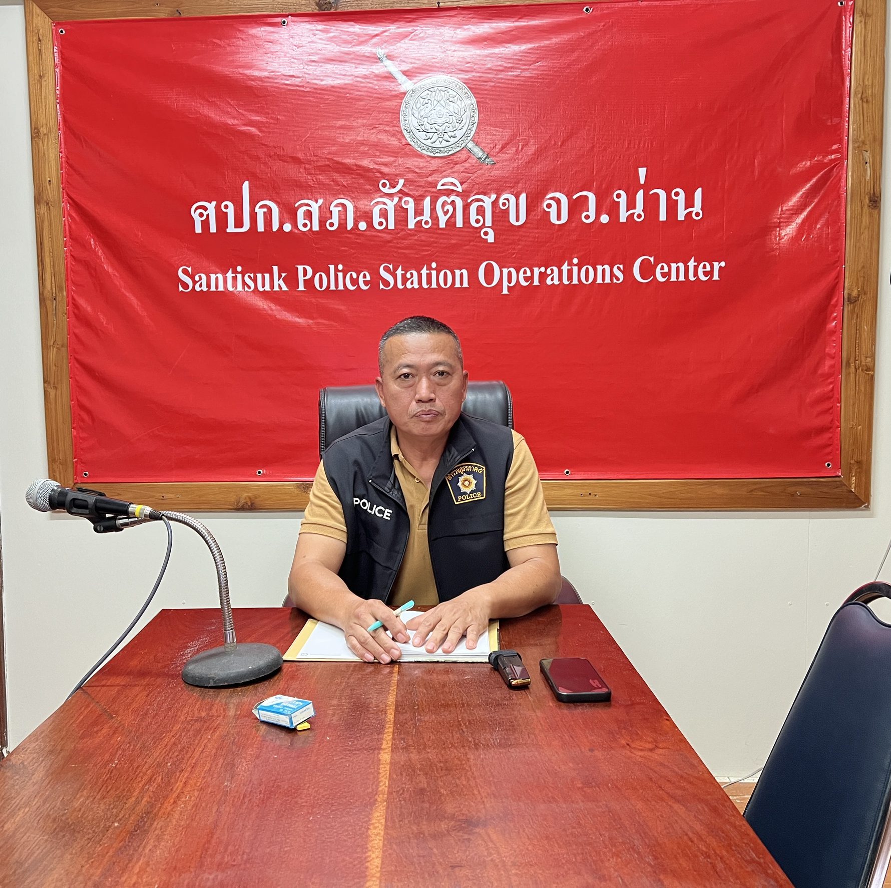 สภ.สันติสุข ภ.จว.น่าน วันที่ 25 มีนาคม 2568 เวลา 19.50 น. ร.ต.อ.อดุลย์ พรหมสกุลปัญญา รอง สว.(สอบสวน)