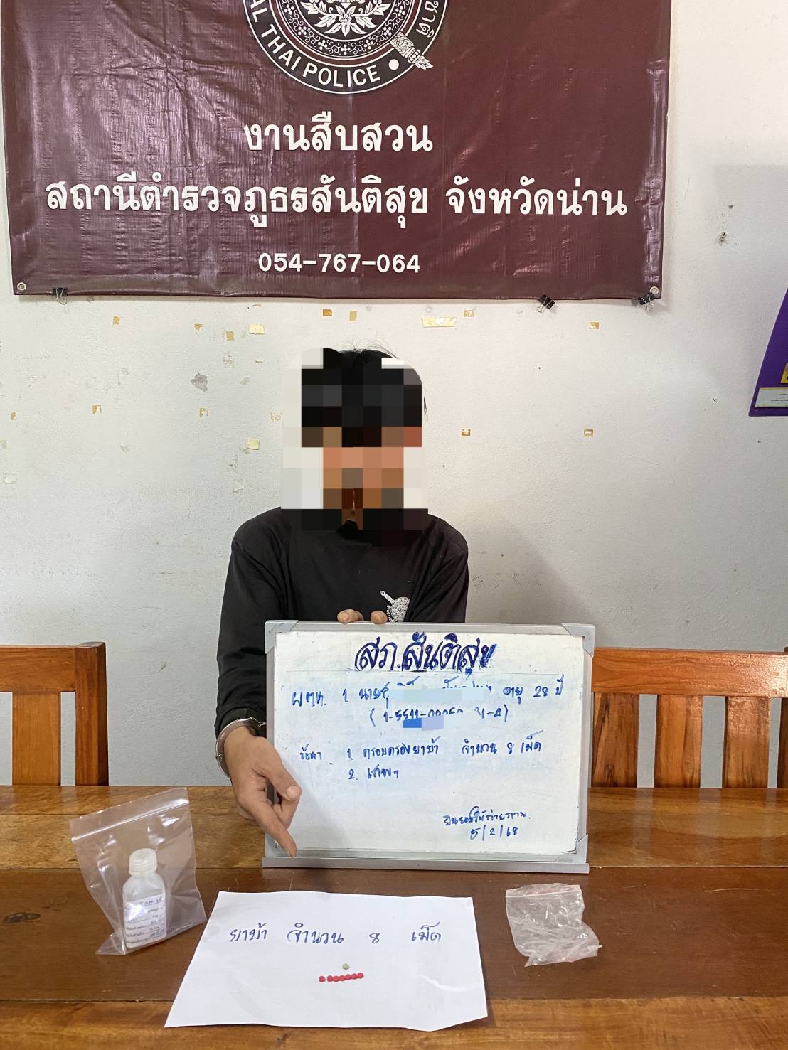 สภ.สันติสุข จว.น่าน รายงานผลการจับกุม พ.ร.บ.ยาเสพติด ผู้ต้องหา จำนวน 1 ราย 1 คน