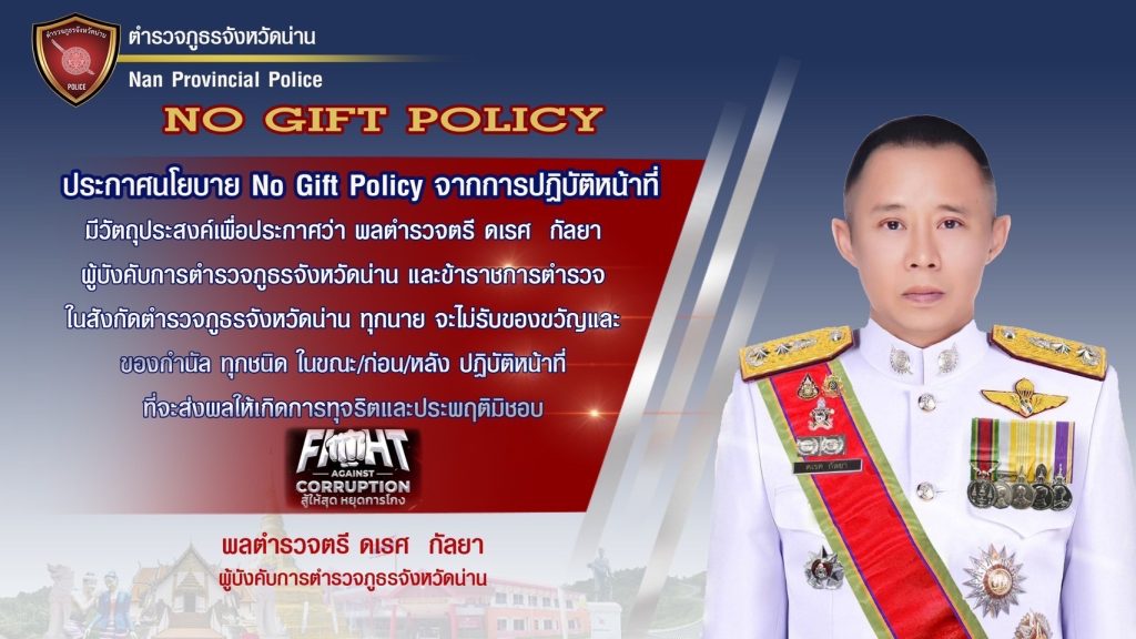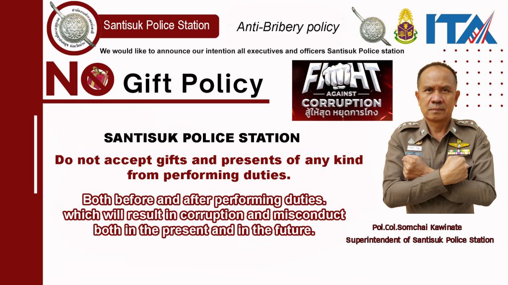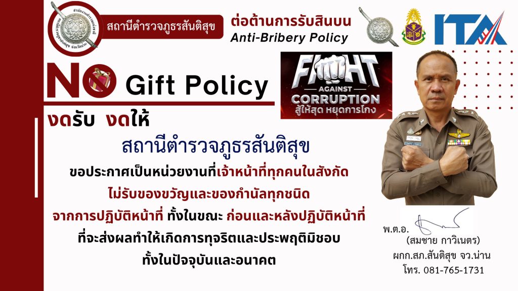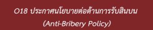 ประกาศนโยบายต่อต้านการรับสินบน ( Anti-Birbery Policy) และและนโยบายไม่รับของขวัญและของกำนัลทุกชนิด (No Gift Policy) จากการปฏิบัติหน้าที่ (ภาษาไทย )