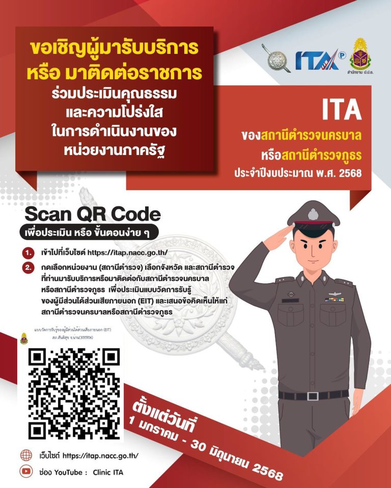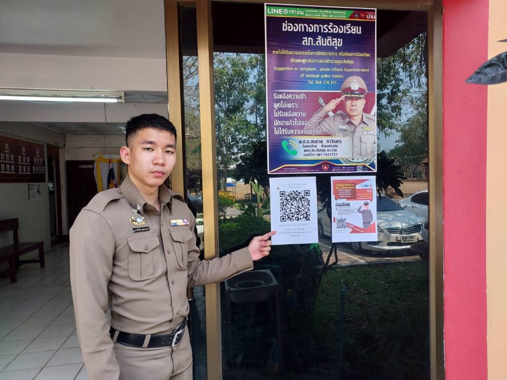 สภ.สันติสุข ฯ อำนวยการโดย พ.ต.อ.สมชาย กาวิเนตร ผกก.สภ.สันติสุข ฯ มอบหมายให้ ตำรวจ สภ.สันติสุข ออกทำการประชาสัมพันธ์ เชิญชวนประชาชนร่วมประเมิน ผู้มีส่วนได้ส่วนเสียภายนอก EIT กับประชาชนในพื้นที่ สภ.สันติสุข จังหวัดน่่าน ระหว่างวันที่ 1 มกราคม 2568 ถึง 1 มิถุนายน 2568