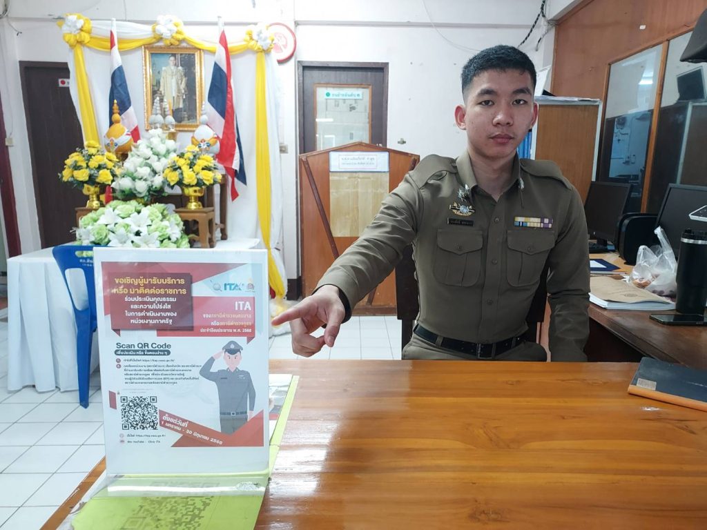 การประชาสัมพันธ์ เชิญชวนประชาชนที่มาใช้บริการ สภ.สันติสุข ร่วมประเมิน EIT ผู้มีส่วนได้ส่วนเสียภายนอก ณ จุดประชาสัมพันธ์ และ ONE STOP SERVICE CENTER