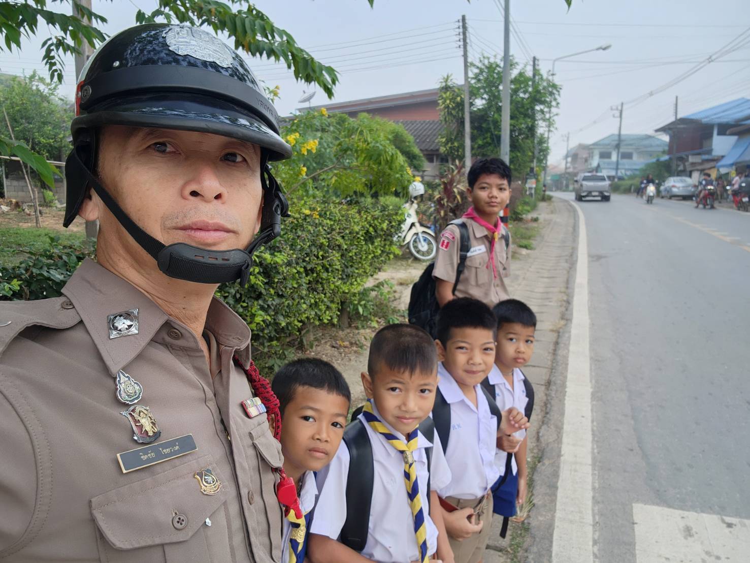 สภ.สันติสุข ภ.จว.น่าน อำนวยความสะดวกด้านการจราจรหน้าโรงเรียนบ้านศรีนาม่าน